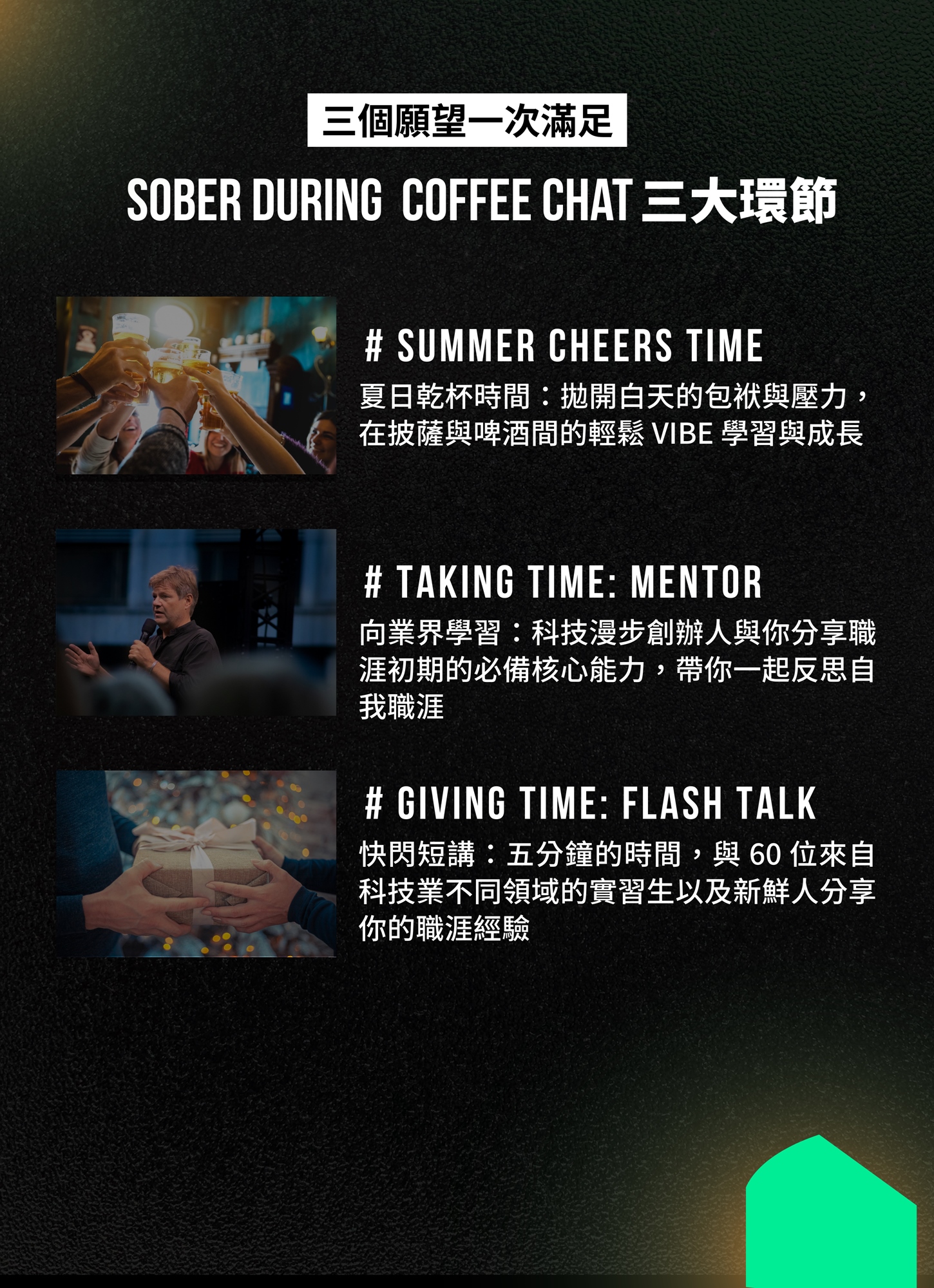 - 活動席次有限,若報名人數眾多,Cake 國際人才平台將於 9/24、10/6 分兩批次考慮活動參與者的工作背景、工作經驗,審核其參與資格