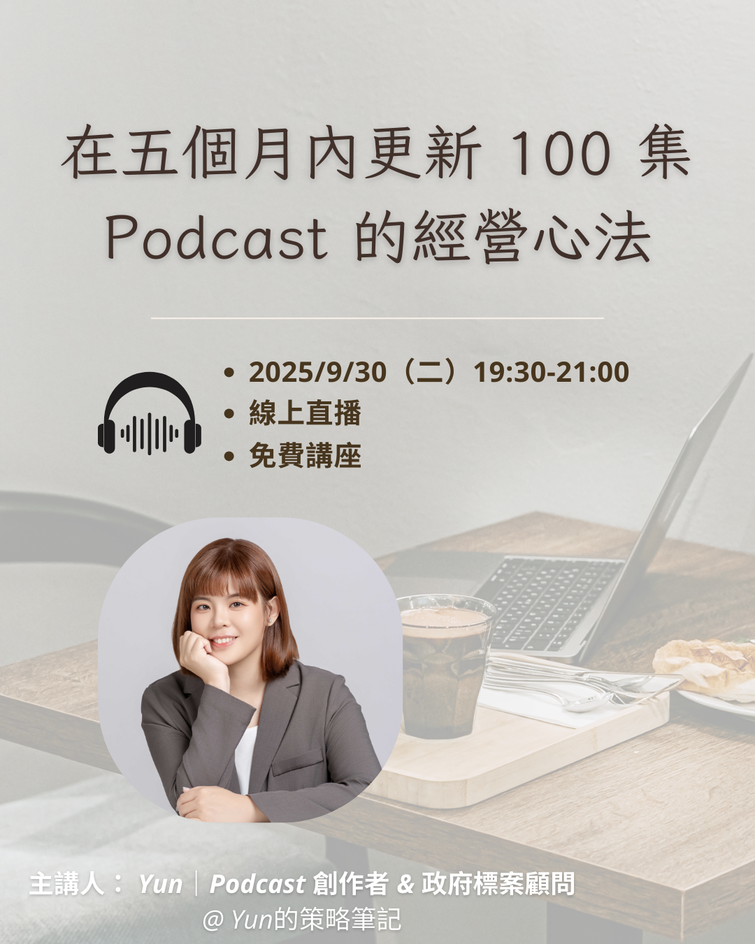 《Yun 的策略筆記》Podcast 主持人,五個月更新 100 集