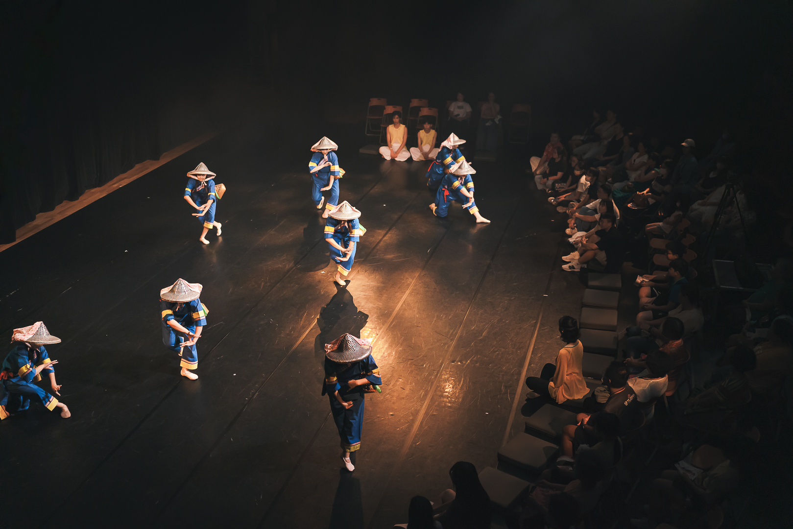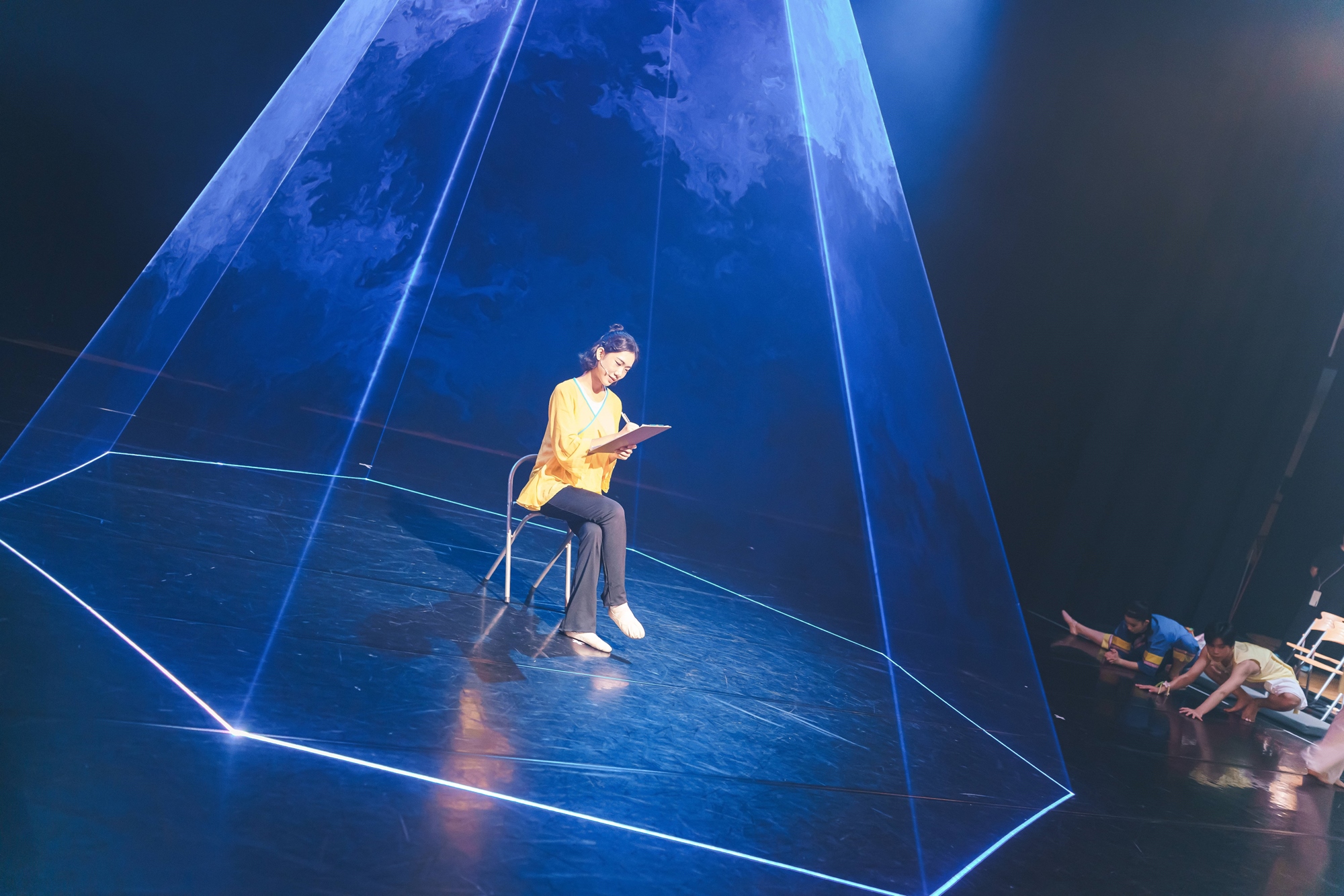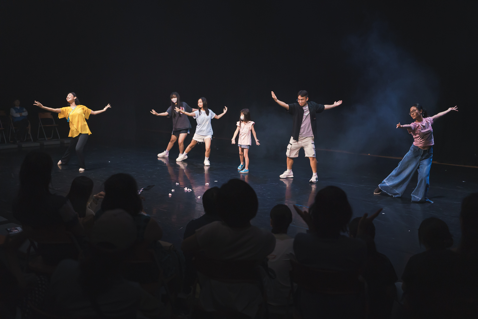我們採用黑盒子劇場呈現,觀眾座位就設在舞台之上。沒有高高在上的「第四面牆」,只有你與表演者之間幾步的距離。舞者與演員會在觀眾席穿梭、對望、擦肩而過,像極了你也是劇中人,或是此刻同場的旁觀者。視線被燈光悄悄導引,你可以近距離聽見呼吸、看見汗光,感受一個動作在你面前生成、破碎、再重組。這種沉浸式觀看,讓每個人都成為場上的「能量點」,共同雕塑演出的節奏與氣場。