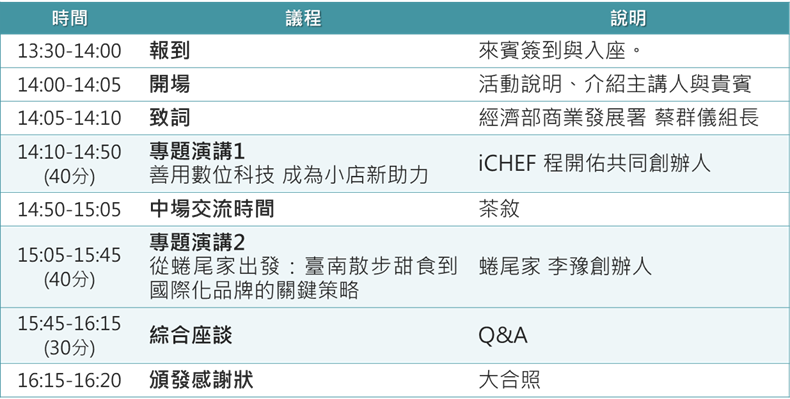 - 本活動以商業服務業企業主及高階經理人為優先報名對象,報名不等於審核通過,錄取者將於活動前寄發通知信。