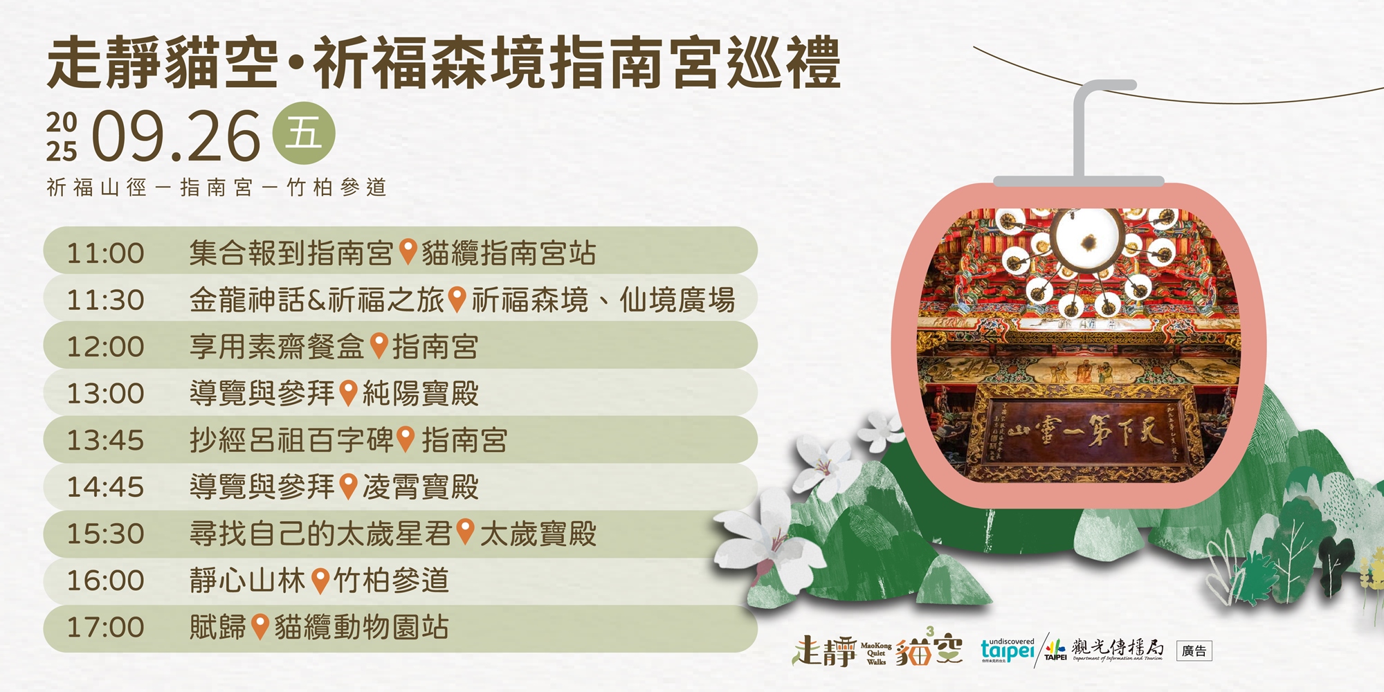 - 本活動由臺北市政府觀光傳播局主辦,並由貓空商圈協辦,期待與您一同走進山林,深度感受貓空的靜謐與人文。