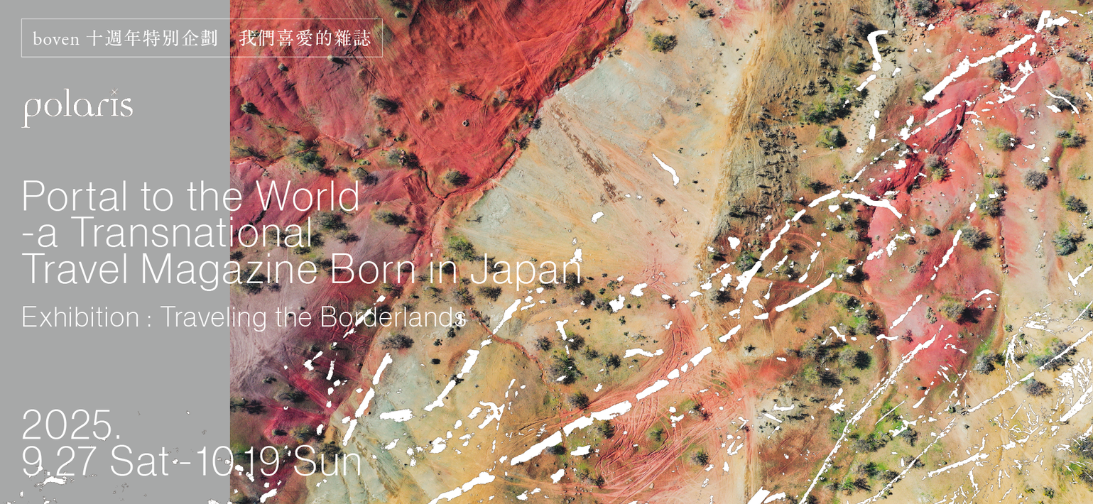 適逢boven創立十週年,以及《Polaris》新刊Issue03特輯「探索世界邊境」(辺境をゆく)的發行,我們邀請到《Polaris》總編塗木拓朗(Takuro Nuruki)分享雜誌編輯的故事,並結合誌中的攝影師牛丸維人(Masato Ushimaru)拍攝的作品,將世界的眼光,從邊境帶到台北,從紙本具象於boven,讓每一位走進展場的你,都能透過這些影像,看見世界的遼闊,也重新認識邊境的多樣與溫度。