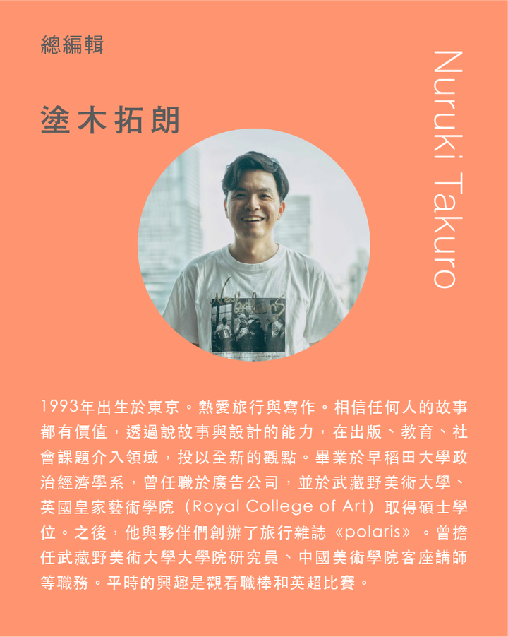🙋🏽 塗木拓朗(Takuro Nuruki)|《Polaris》總編輯