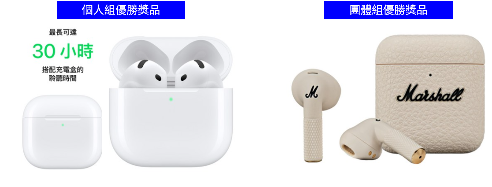 個人獎得主,每位獲:AirPods 4代 藍芽耳機一份;7-11禮券1,000元、文化局限定好禮、謝哲青簽名書。以及公開曝光機會。