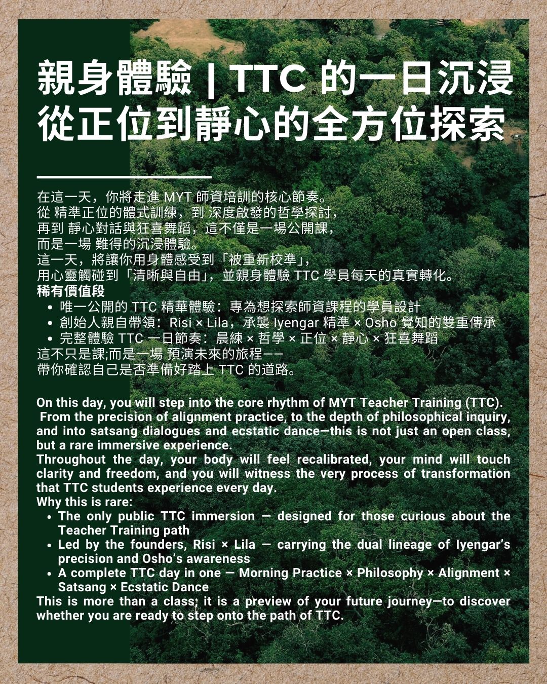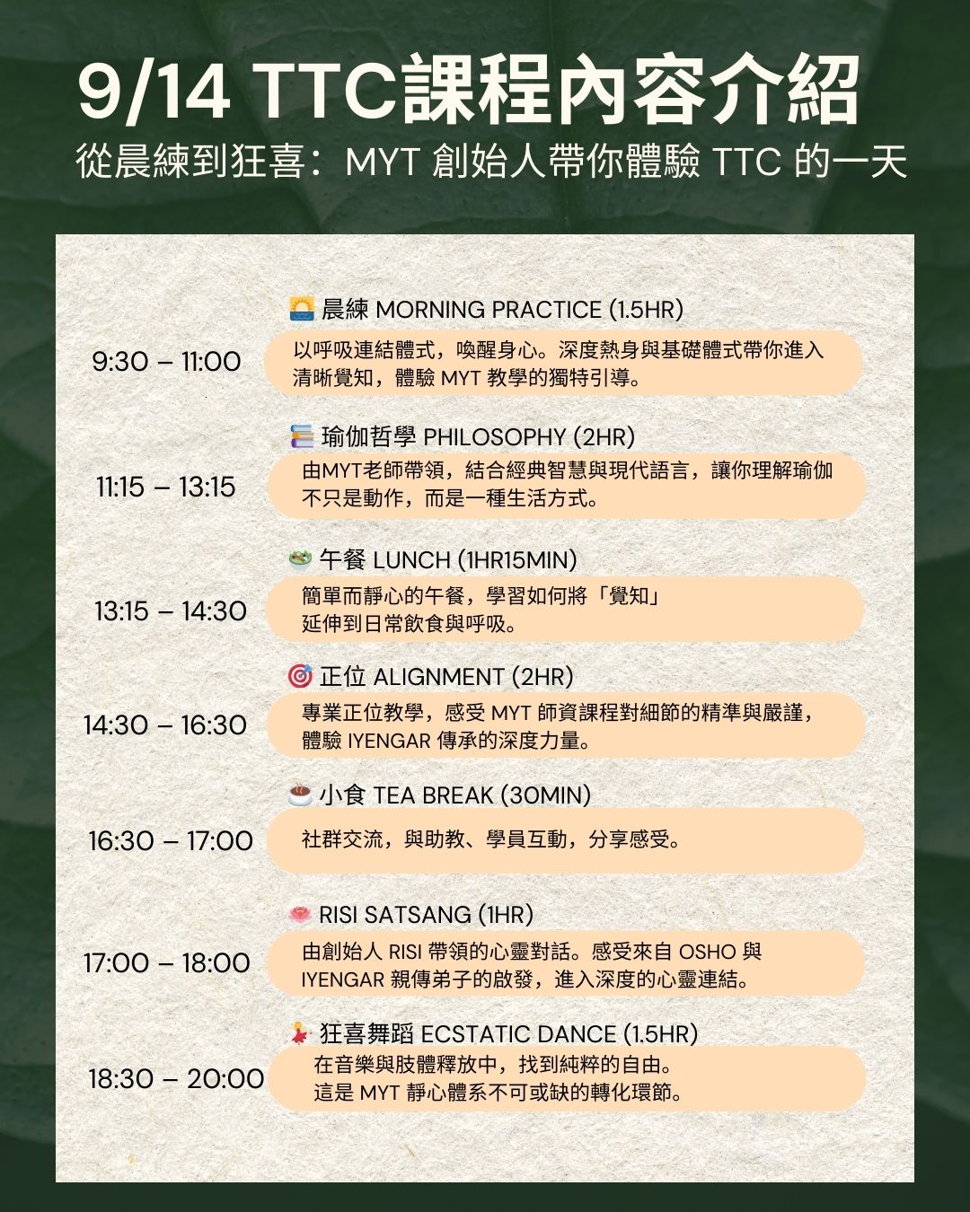 MYT.yoga TTC 一日沉浸|正位與靜心的體驗之旅 RYT200小時體驗