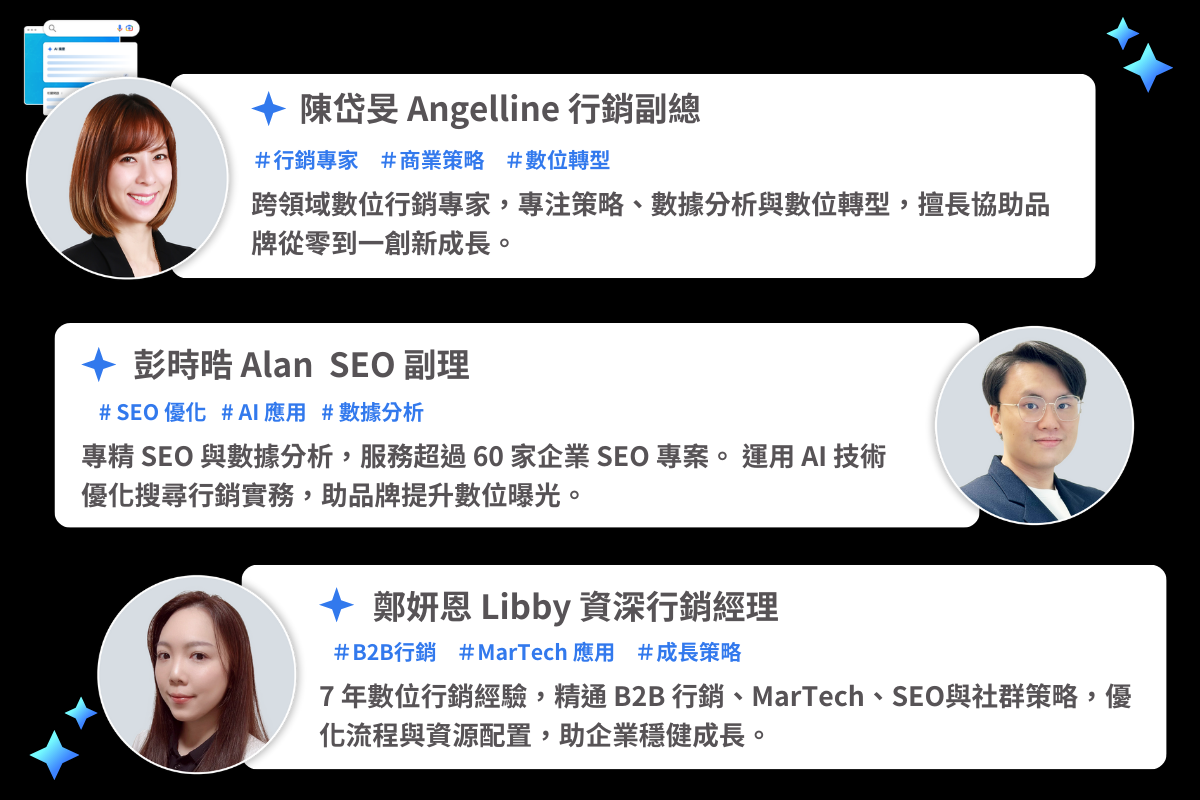 本次線上講座將邀請 SEO 工程專家、行銷軍師與成長駭客,三位專家對談,深入解析 AI 模式並解讀《LLMO 時代》白皮書,帶你快速掌握: