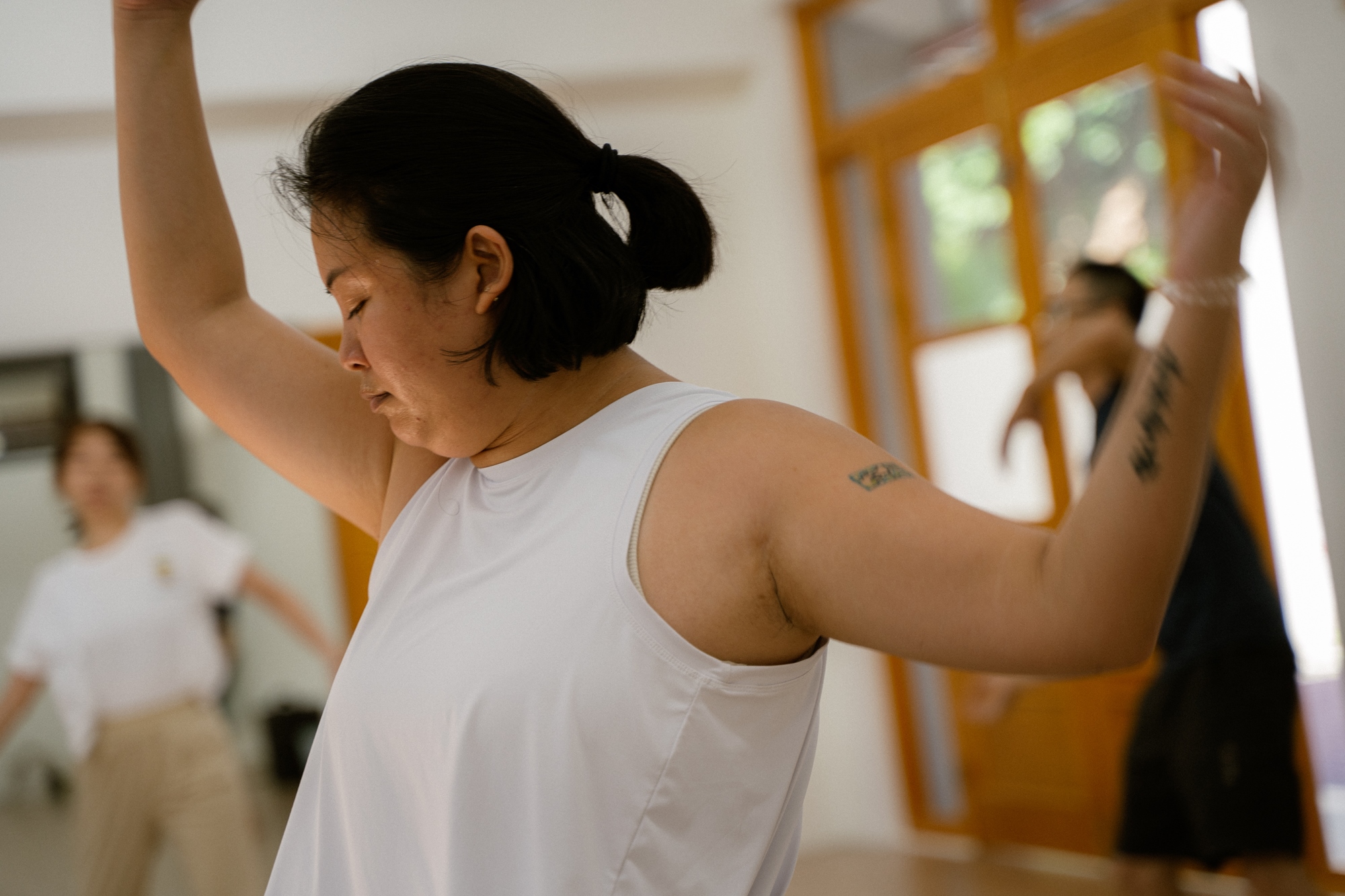 第一堂,聚焦於個人記憶的觸發與身體的探索,幫助參與者以肢體動作表達情感。