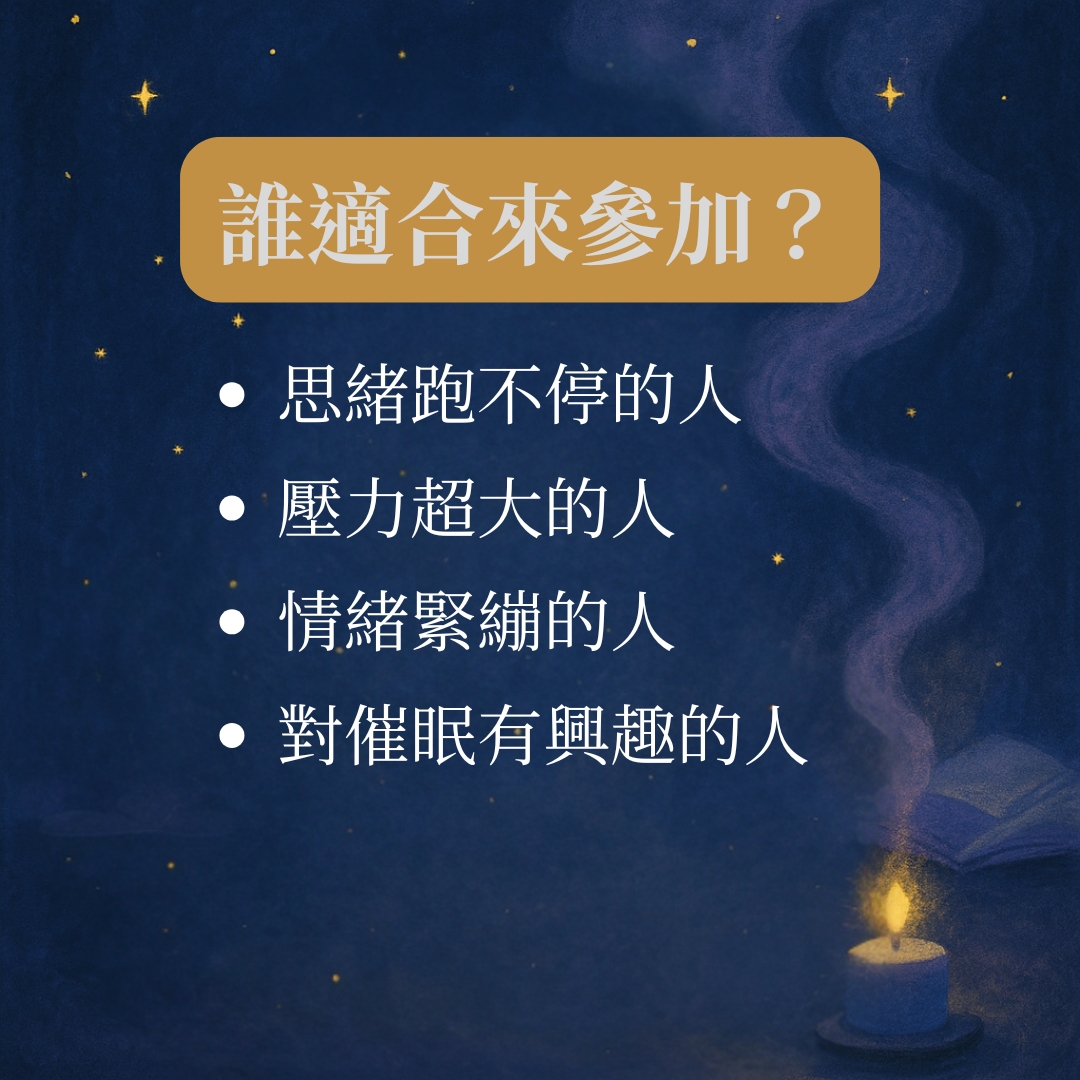 - 活動形式: 講師線上引導 + 深度催眠體驗 + 體驗分享