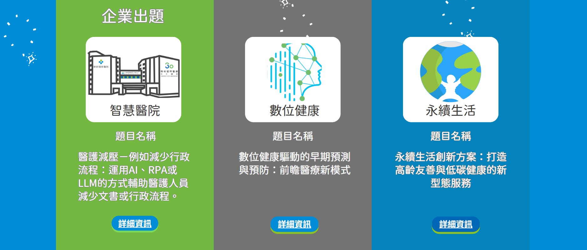 - 選定的命題範疇(智慧醫院 / 數位健康 / 永續生活)
