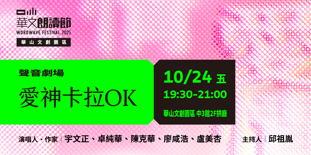 華文朗讀節推出:愛神卡拉ok特別活動,超級難得邀請作家來唱作家寫的歌;邱祖胤主持,宇文正、卓純華、陳克華、廖咸浩、盧美杏五位作家共同來唱歌,作家們選唱由陳克華、吳念真、瓊瑤、三毛、李格弟等人寫下的經典情歌。
