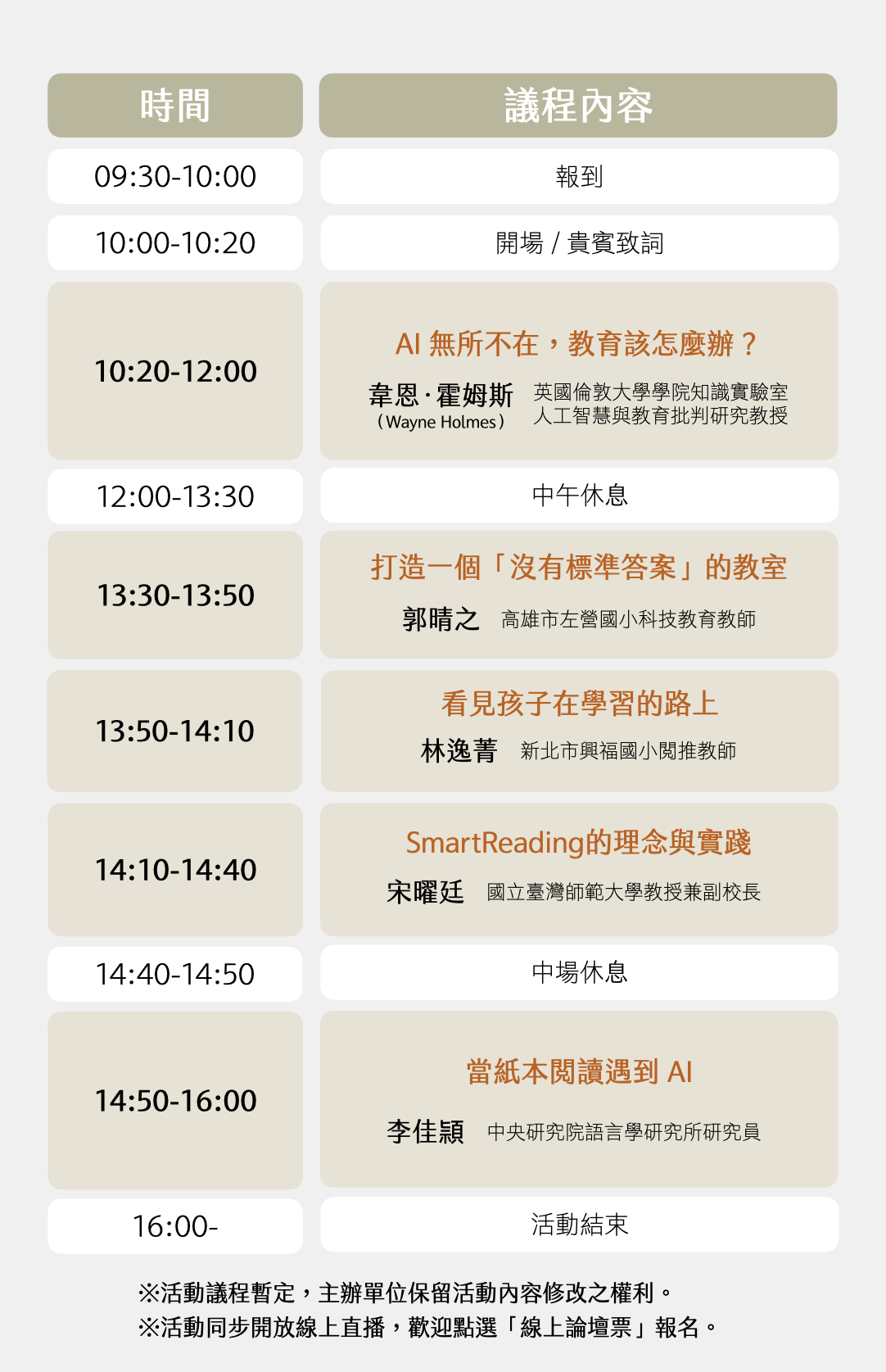 邀請國內外教育專家學者從「閱讀 × 腦科學 × AI學習」等跨域視角,
