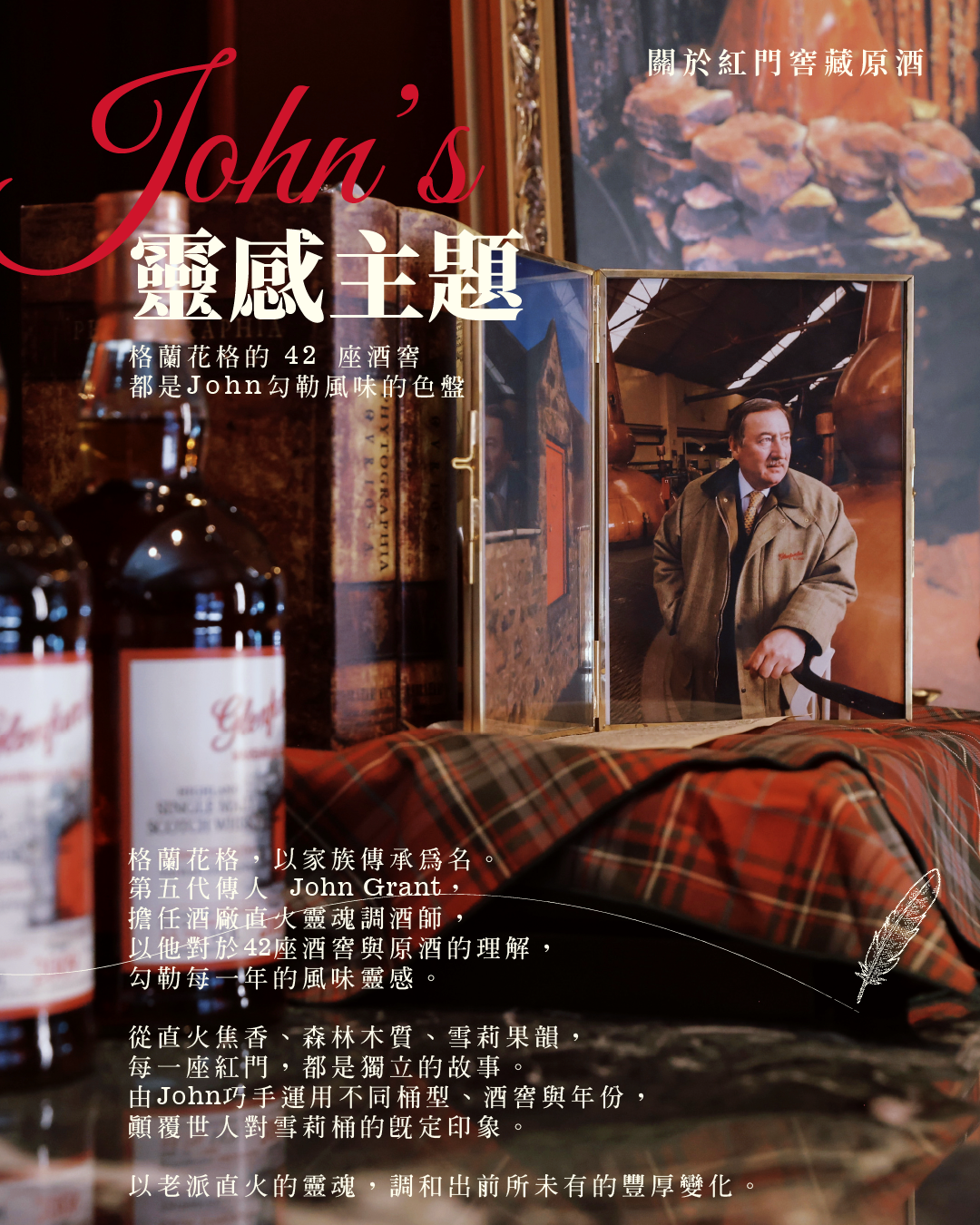 座落在Ben Rinnes (班凌尼斯山)山腳下的翠綠草原,得天獨厚、擁有自然美景的 Glenfarclas,在蘇格蘭蓋爾語中即代表著「青翠草原之谷」的意思。Glenfarclas格蘭花格創廠於1836年,歷經六代傳承,堅持由家族獨立經營,是在蘇格蘭威士忌酒廠多由企業財團經營的大環境之下,少數難得保有其獨立自主性格的酒廠。有人說,格蘭花格美好的秘密是來自於清澈的泉水、嚴選的大麥芽。但其實真正的關鍵是在於他們對每個細節、傳統老派蘇格蘭威士忌釀酒工藝的堅持:保持直火蒸餾法、地舖式倉儲,並親自挑選最高級Oloroso雪莉桶作陳年,最終方得到此真摯芳醇的格蘭花格。只有不隨波逐流的行家,才懂得欣賞這般獨特的品味風格。