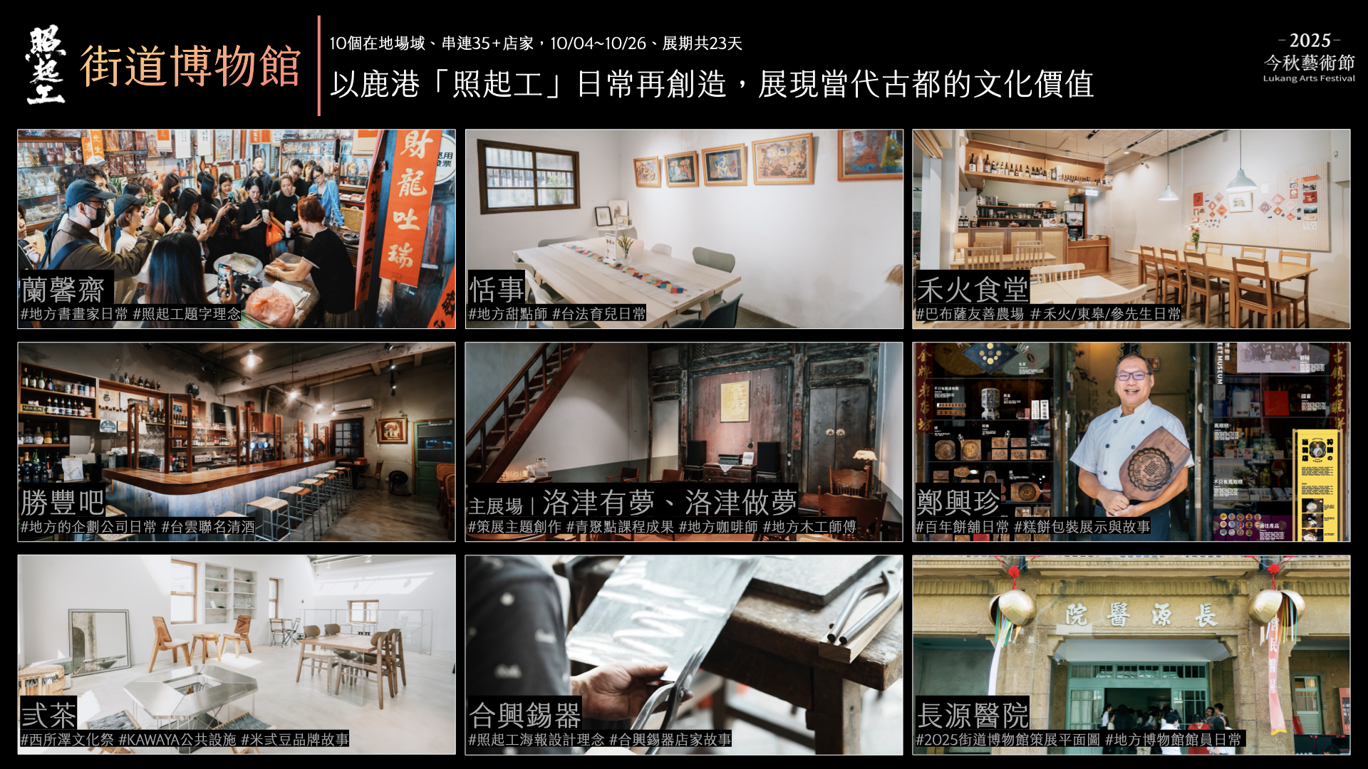 以鹿港街區為展場,串連老屋、工坊與青創店家,挖掘鹿港如何在「照起工」中延續文化與夢想。
