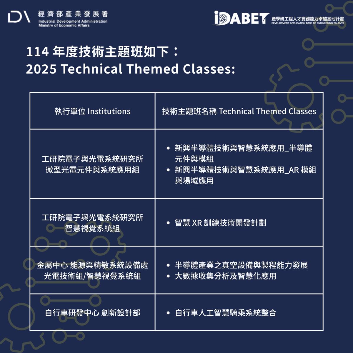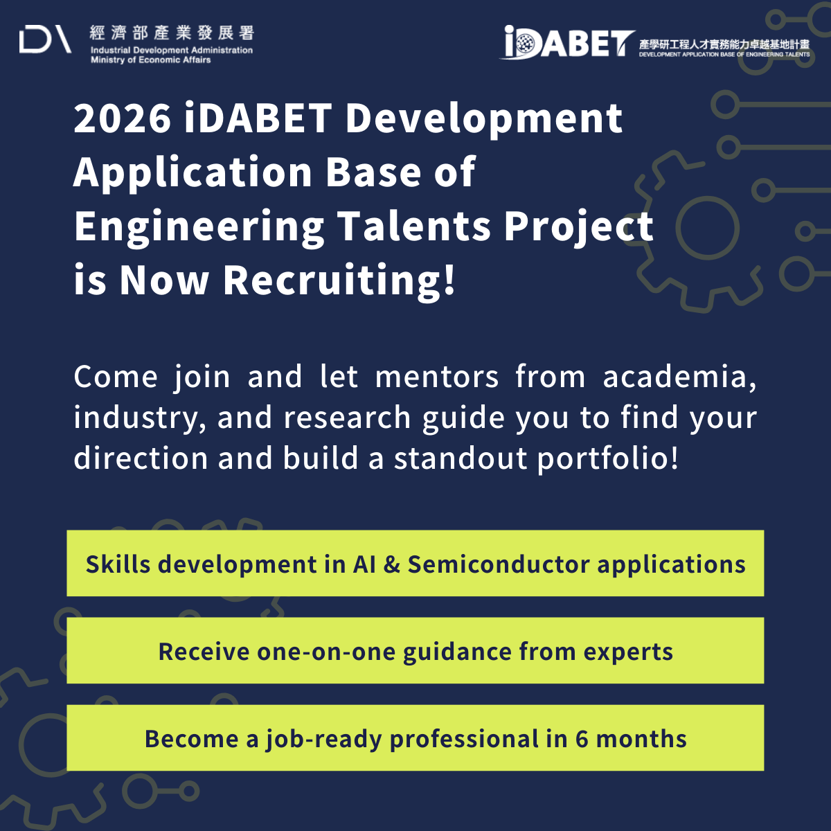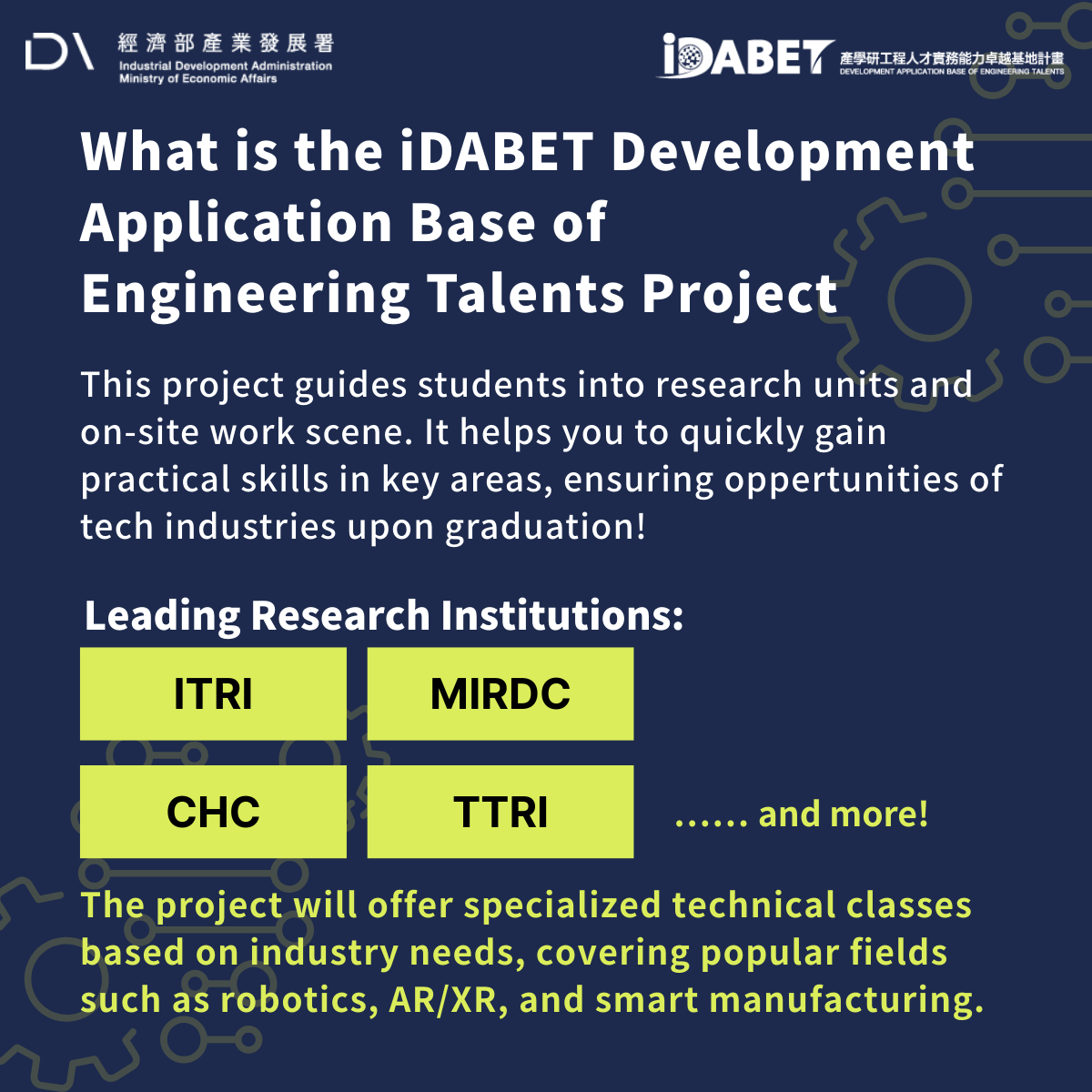 Organizer: Development Application Base of Engineering Talents (iDABET) Project, Industrial Development Administration, Ministry of Economic Affairs