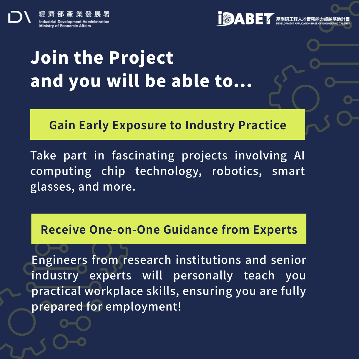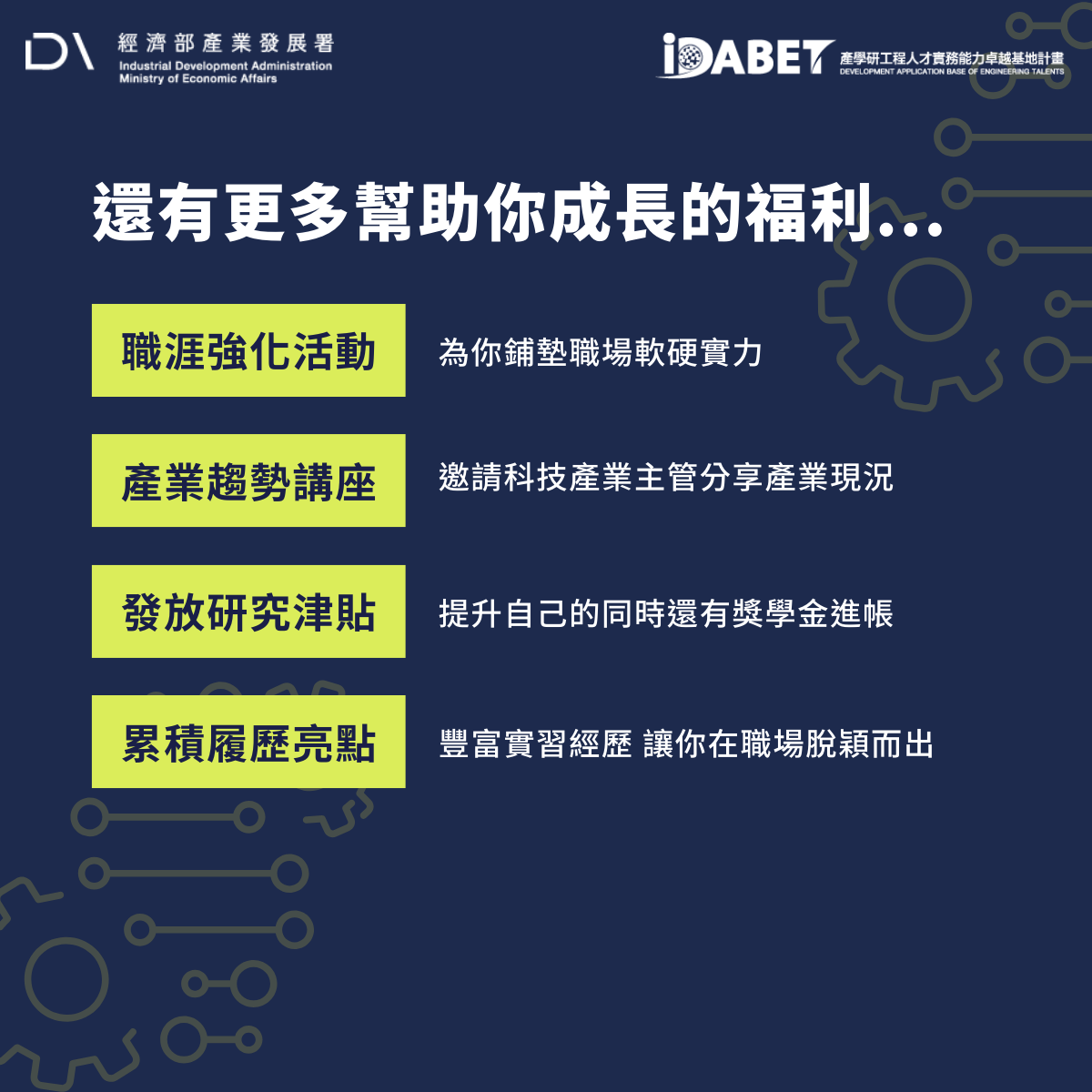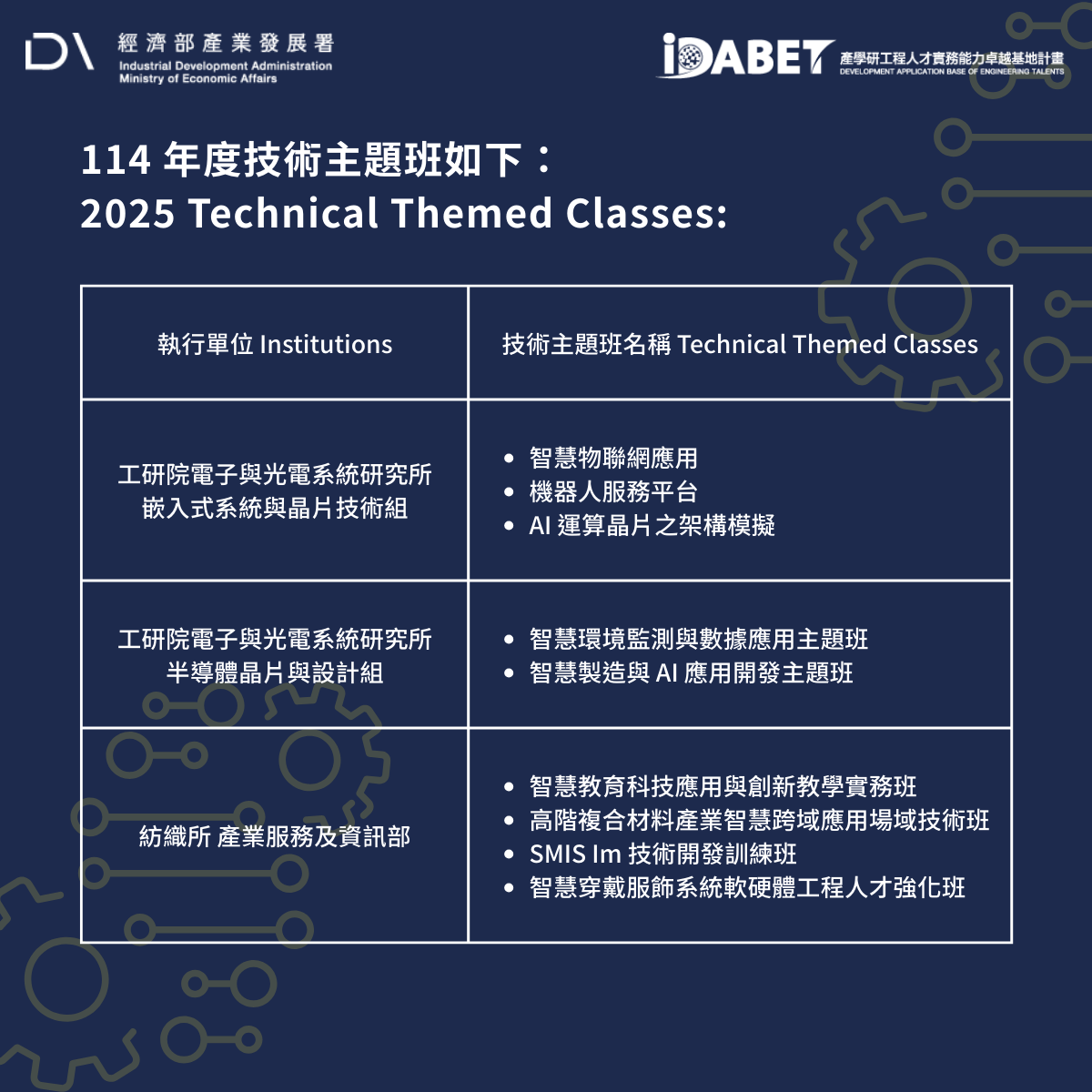 Organizer: Development Application Base of Engineering Talents (iDABET) Project, Industrial Development Administration, Ministry of Economic Affairs