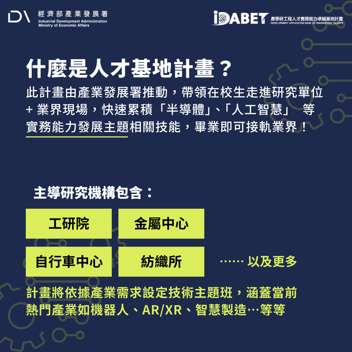 - 主辦單位:經濟部產業發展署產學研工程人才實務能力卓越基地計畫推動辦公室