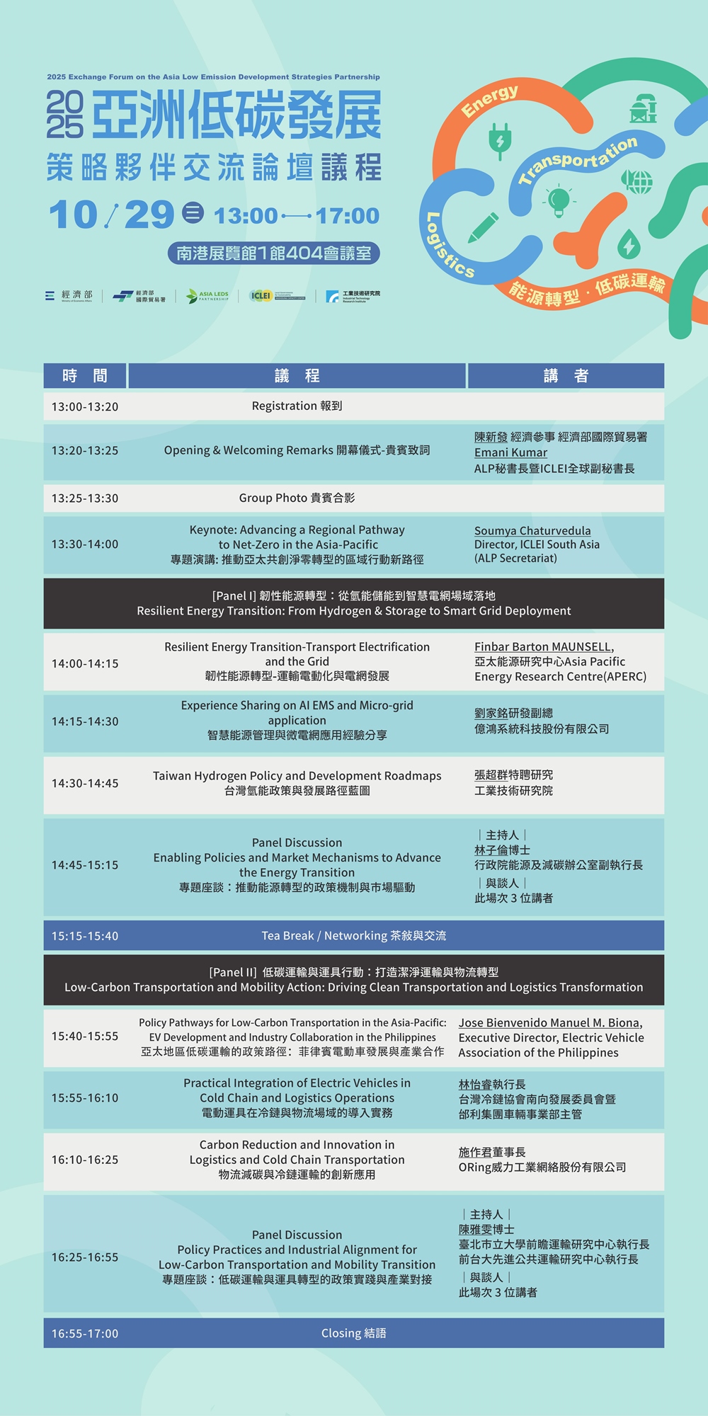 隨著氣候變遷與能源安全挑戰加劇,全球各國正加速邁向低碳轉型。亞太地區作為世界經濟與人口重心,面臨能源結構調整、交通電動化與城市治理等多重轉型壓力。在此背景下,「亞洲低碳發展策略夥伴論壇」(Asia Low Emission Development Strategies Partnership Forum, ALP Forum)作為亞太區域重要的政策對話與實務交流平台,持續推動各國共同探索具韌性與永續性的減碳行動路徑。