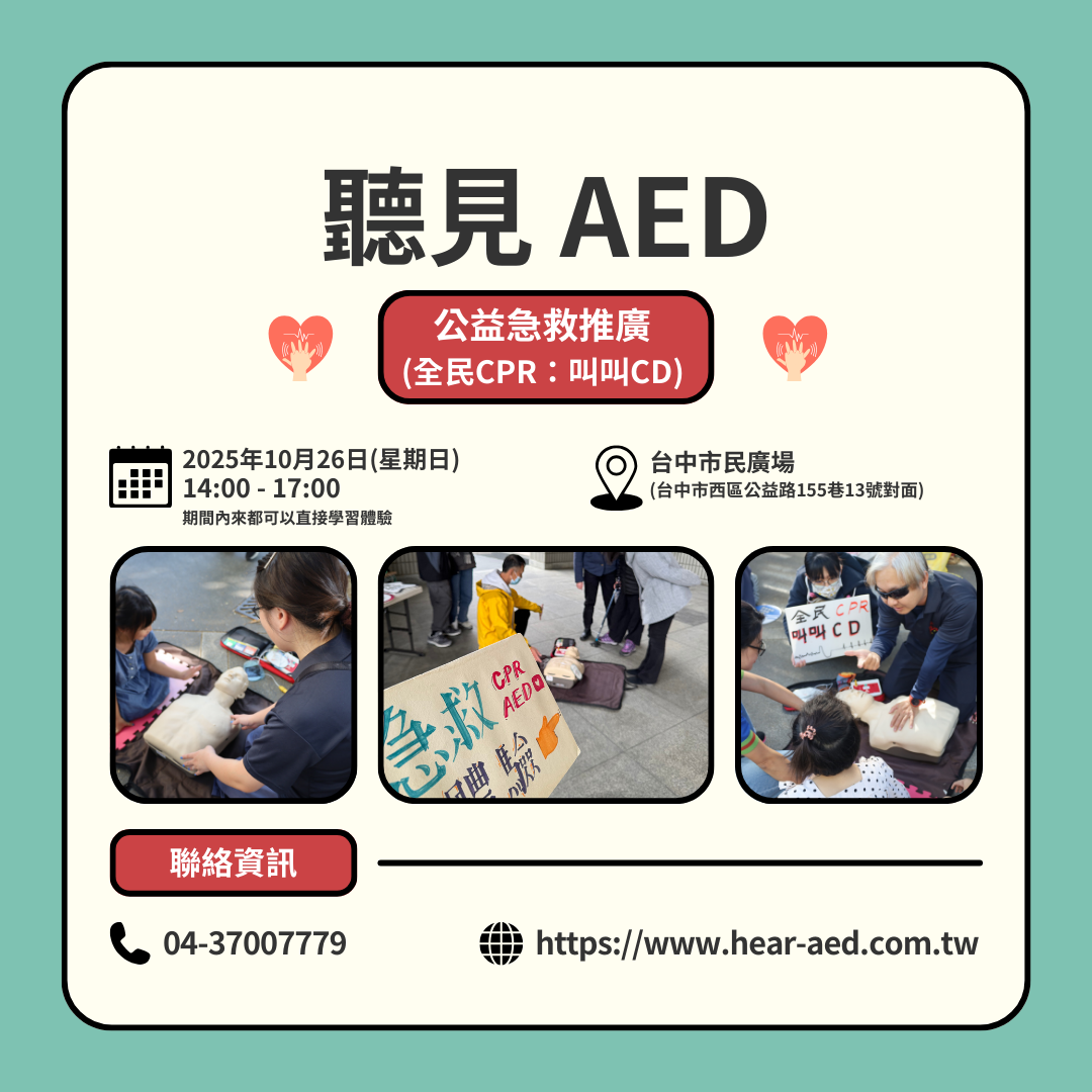 【聽見AED】免費公益急救推廣|全民CPR:叫叫CD 〈10/11台中科博館〉