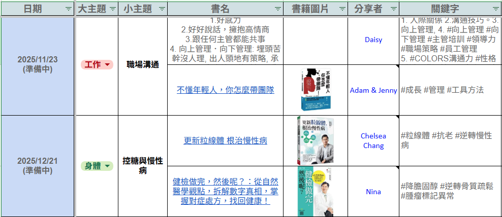 我們是「主題讀書會」,定期由書友們分享不同的主題