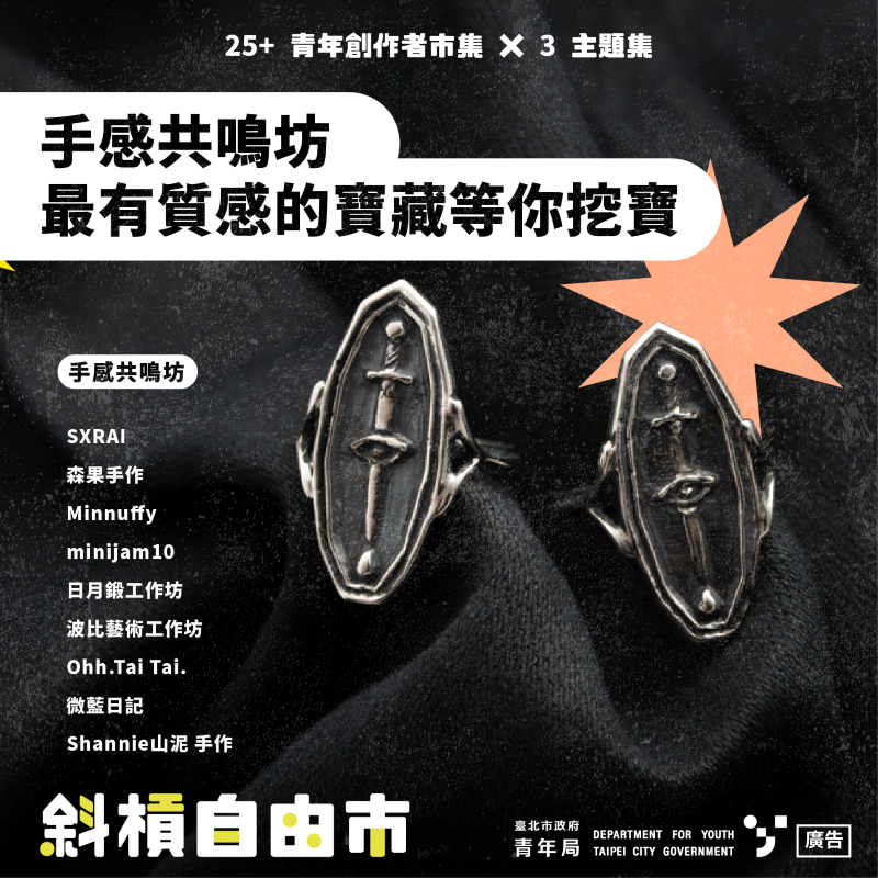 ✦地點|因氣候變化,地點調整至 臺北市政府青年局 市集:1 樓大廳 課程:2樓(仁愛路一段17號) MAP