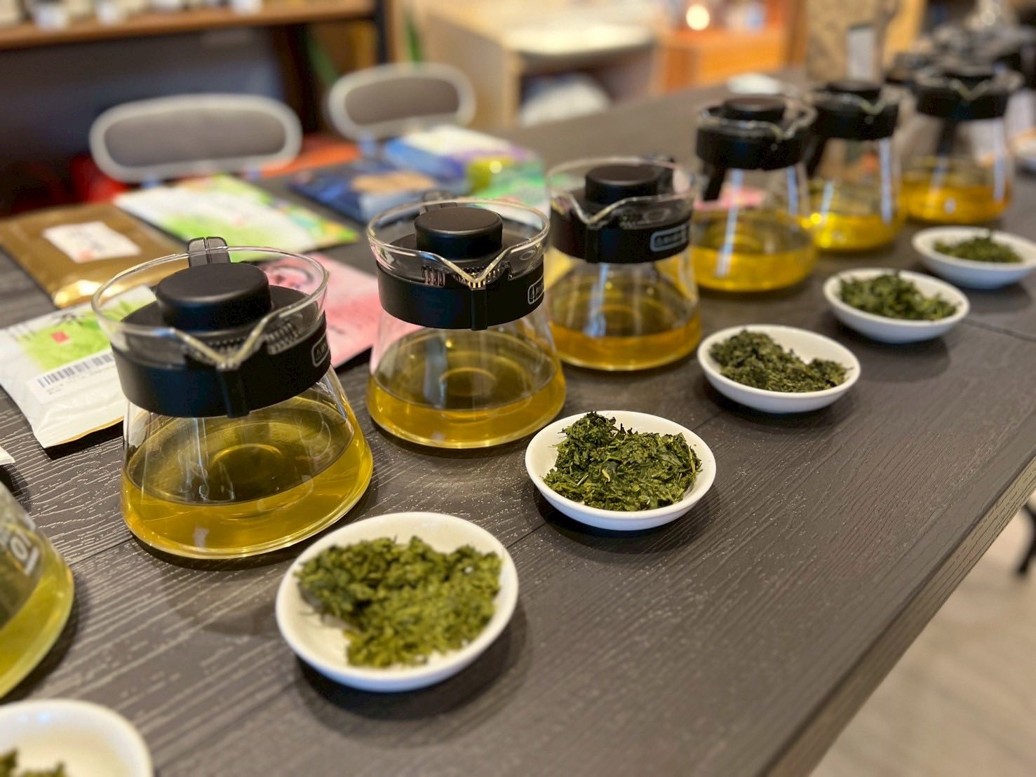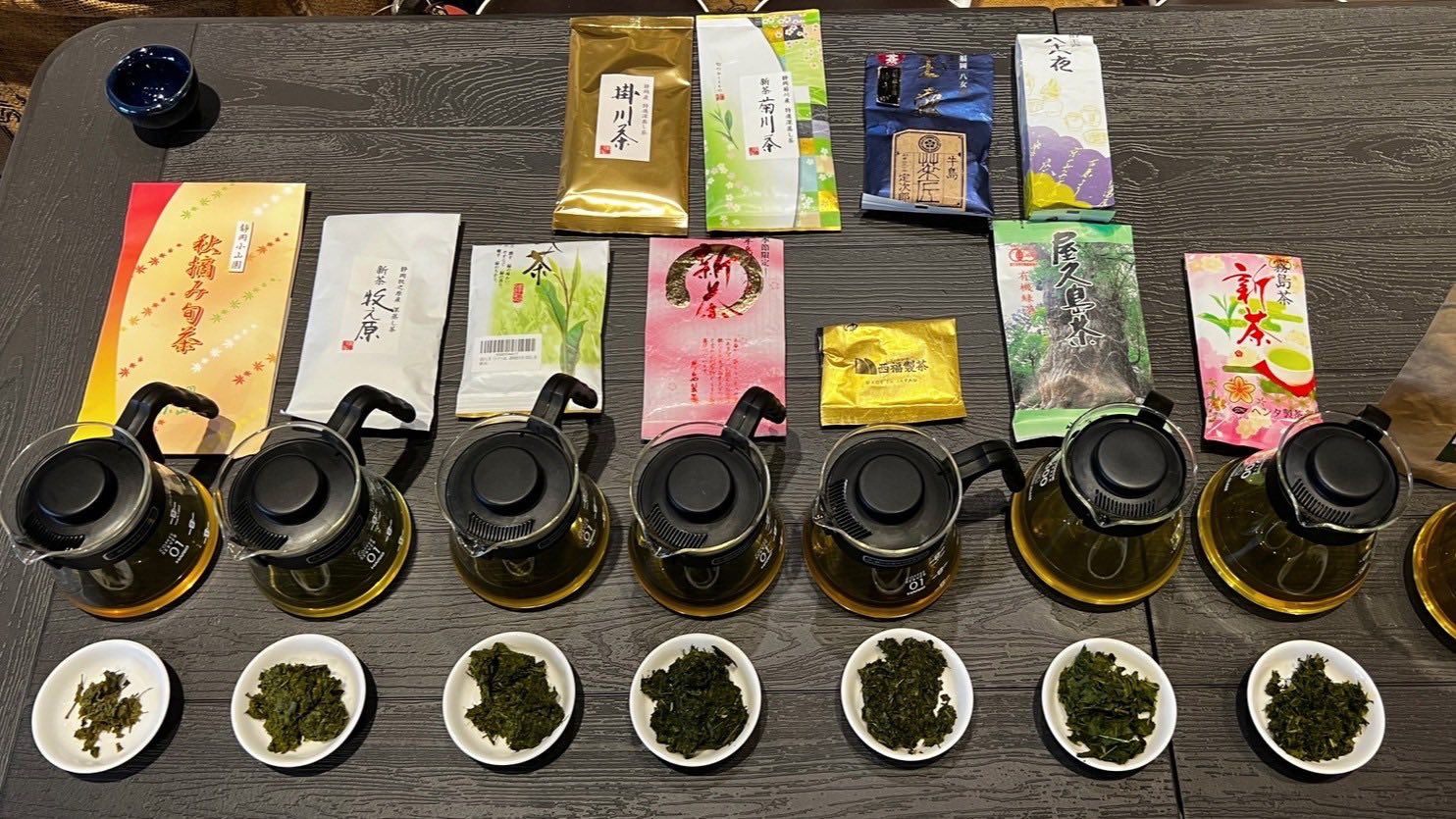 豪華茶單品鑑:課程準備了兩款抹茶(幸褔抹茶運動、宇治辻利抹茶)與十款精選煎茶,從牛島八女到靜岡菊川茶,讓你一次品嚐到不同產地、不同風味的日式綠茶,體驗風味的細微差異。