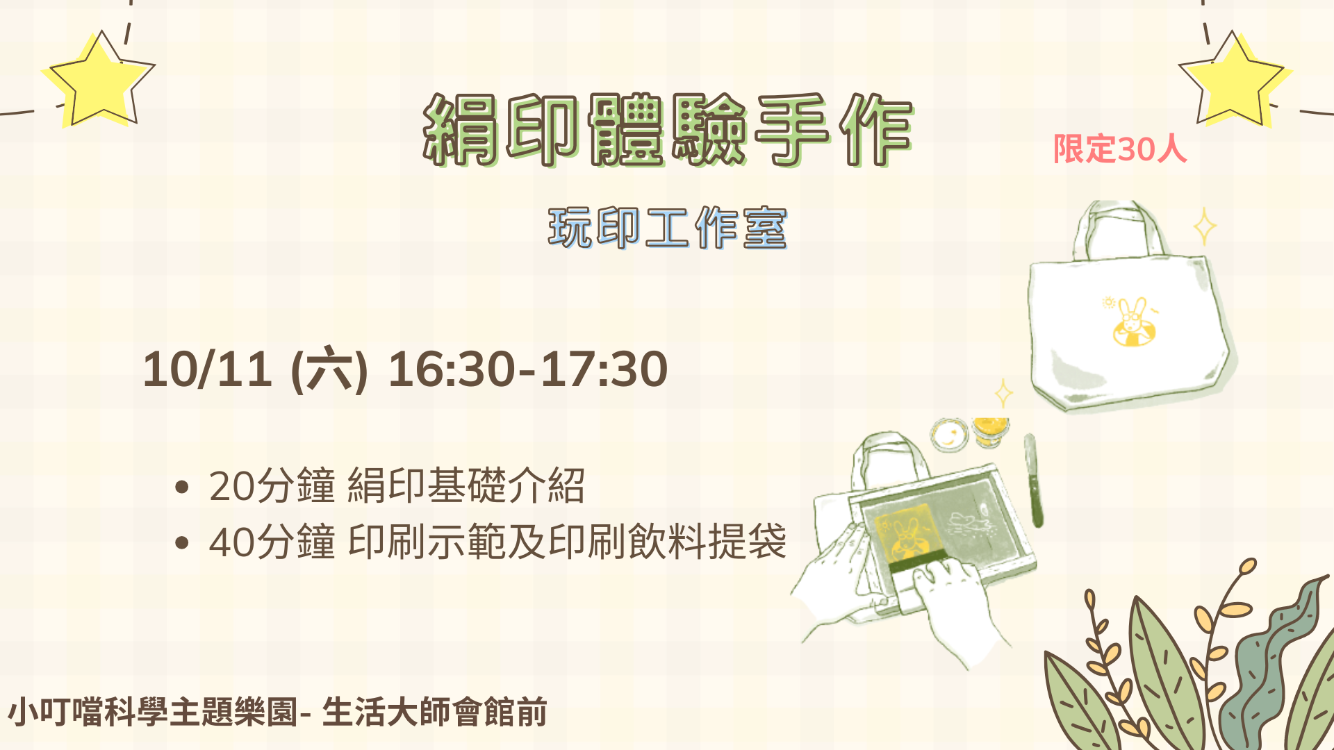 【活動日期】10/11(六)16:30-18:30