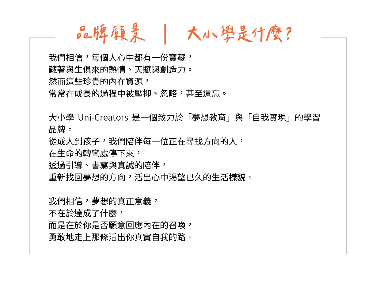 - 費用|工作坊(贈送夢想筆記本)原價 3600元,限時優惠 1,580元(早鳥12/7前享1,480元)