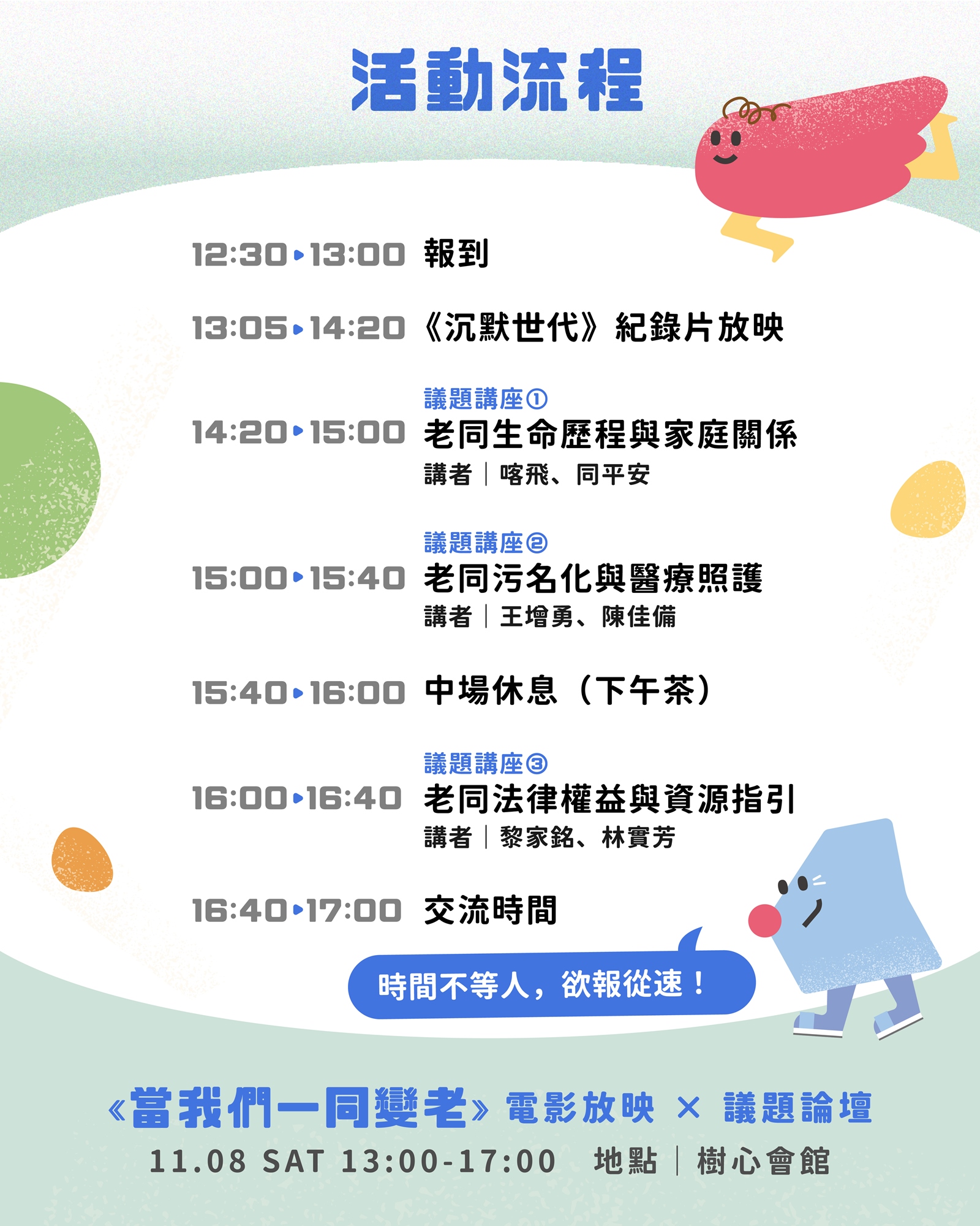 邀你一起看電影、聽講座、享用下午茶,聊聊那個讓所有人都能安心變老的世界!🍰