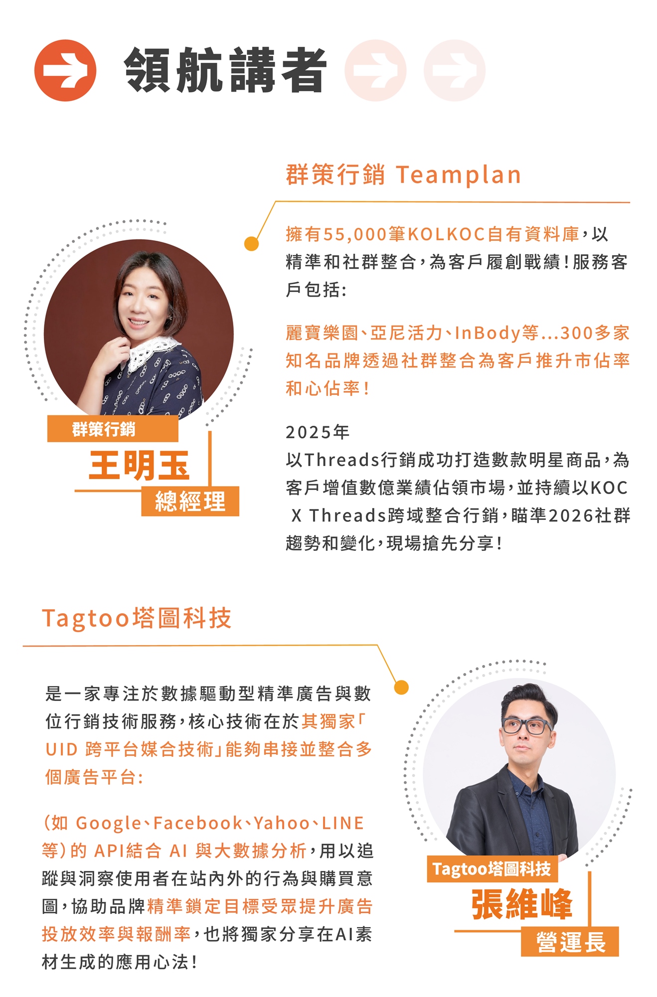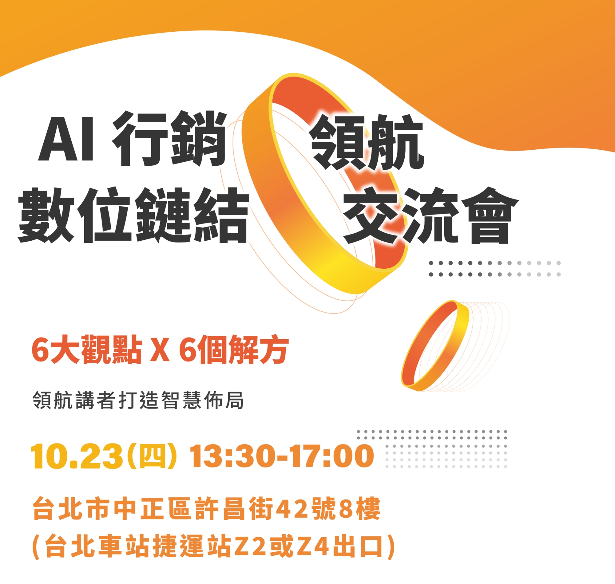 這場交流不僅提供知識,更將成為推動行動的轉折點。AI 行銷不再是混亂的資訊,而是透過「一個觀點、一個解方」帶來更深刻突破的實踐!只要願意把握參與,您將成為下一波數位浪潮中的領航者!