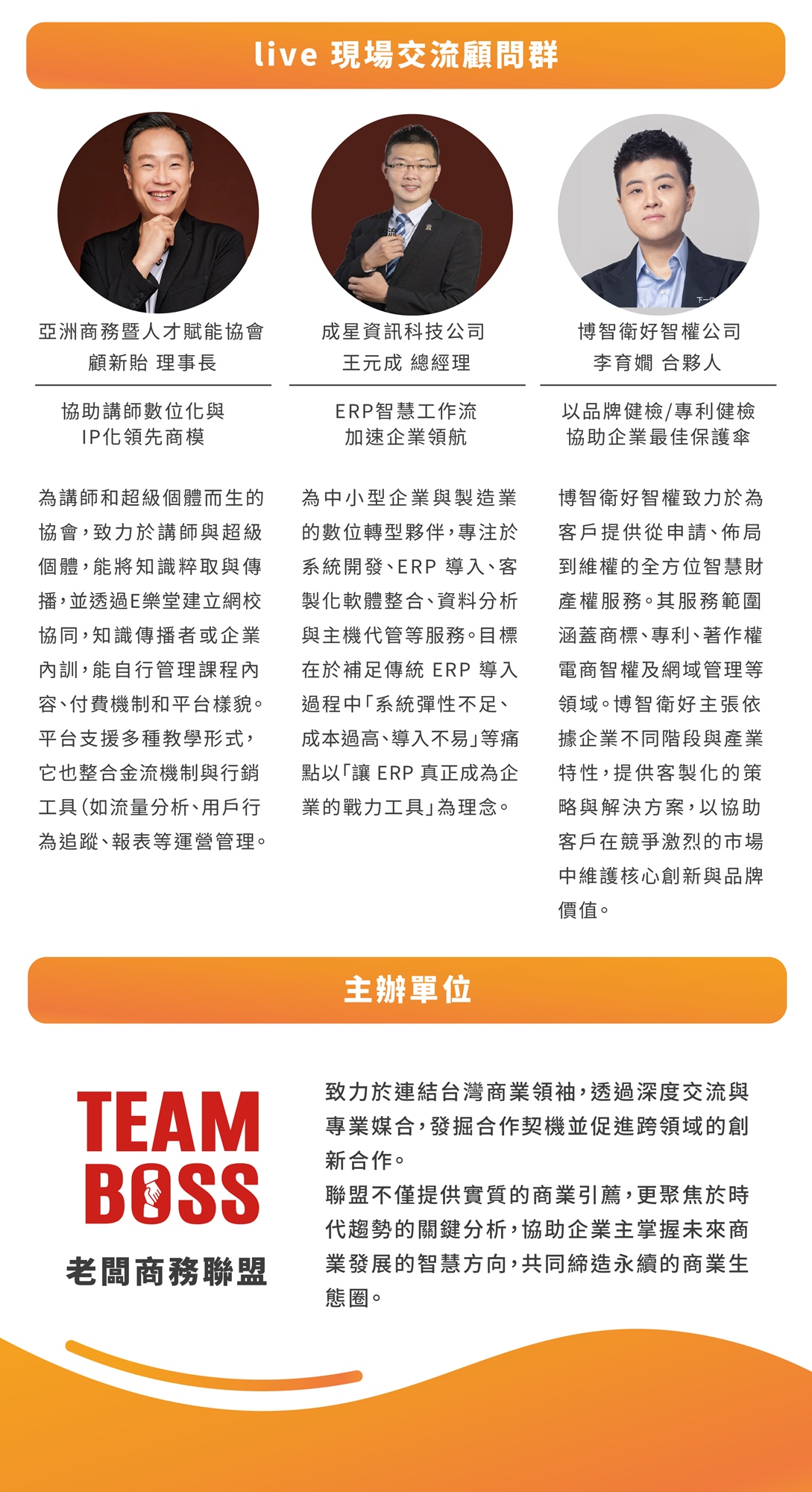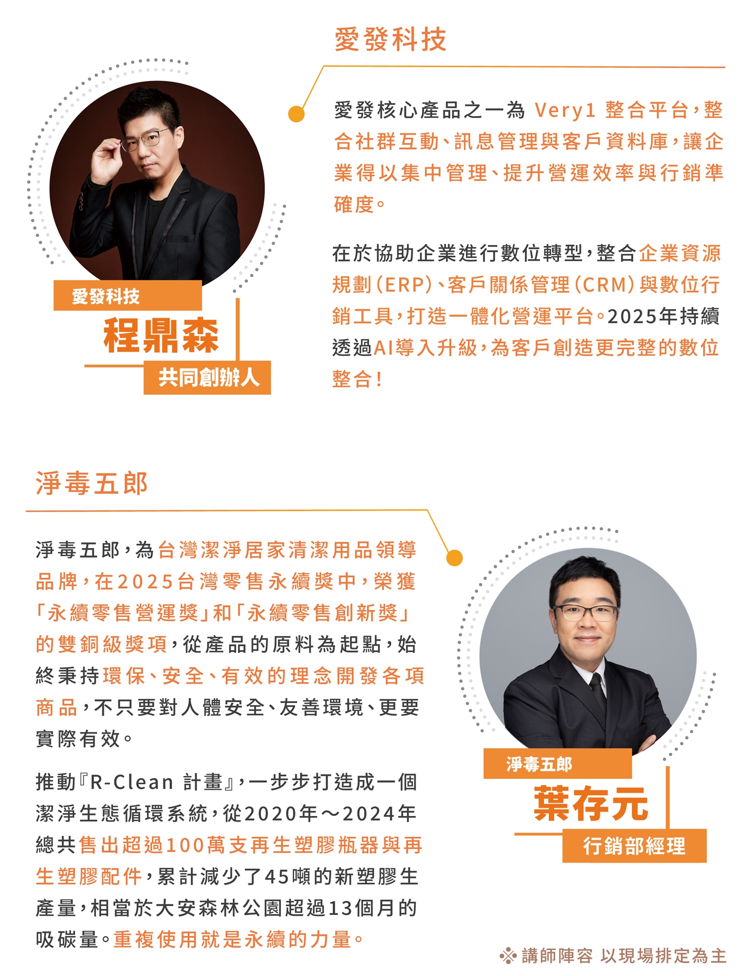 - 實戰案例啟發:透過產業專家的成功案例,學習如何將 AI 轉化為具體成果,避免盲目投資,直接走向高效落地。