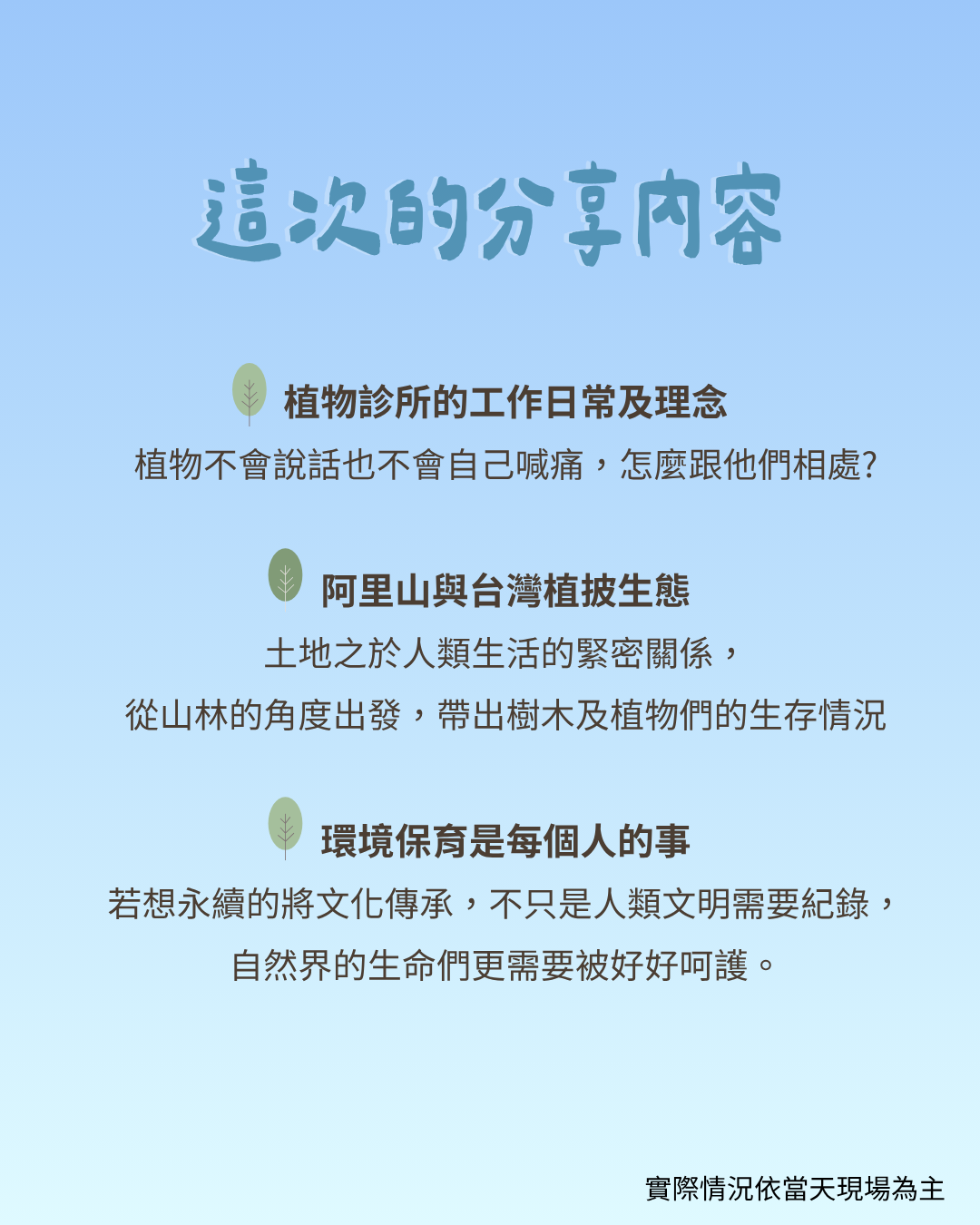 🌳甘霖植物診所 分享會資訊