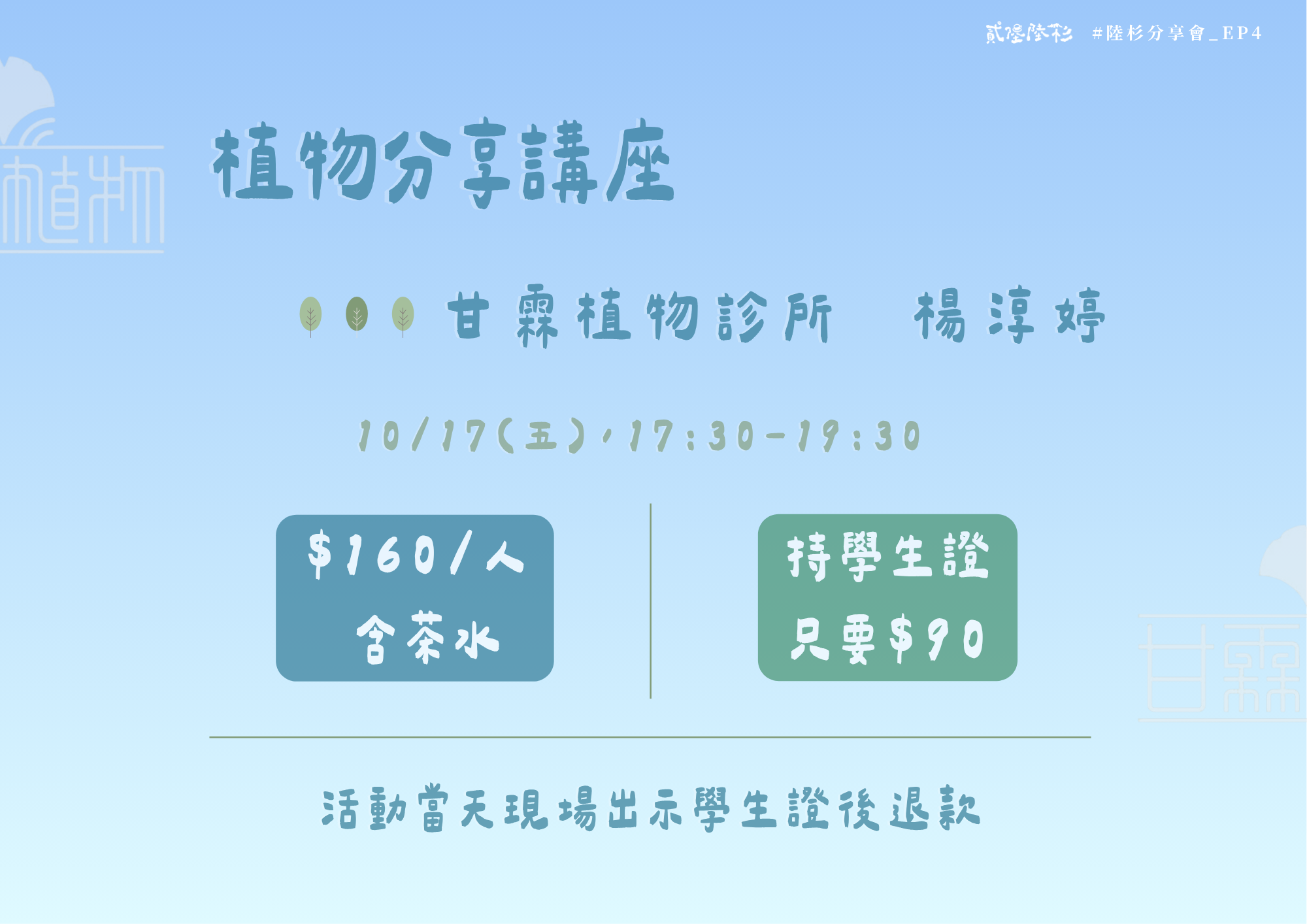 🌳10/17(五) 甘霖植物診所 執行長 楊淳婷 分享會