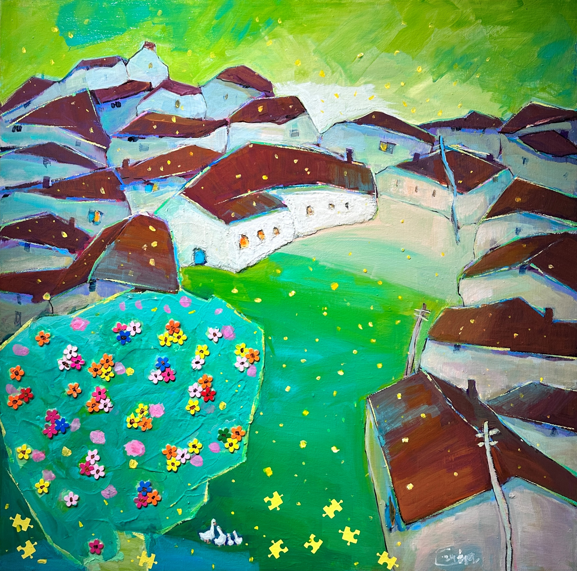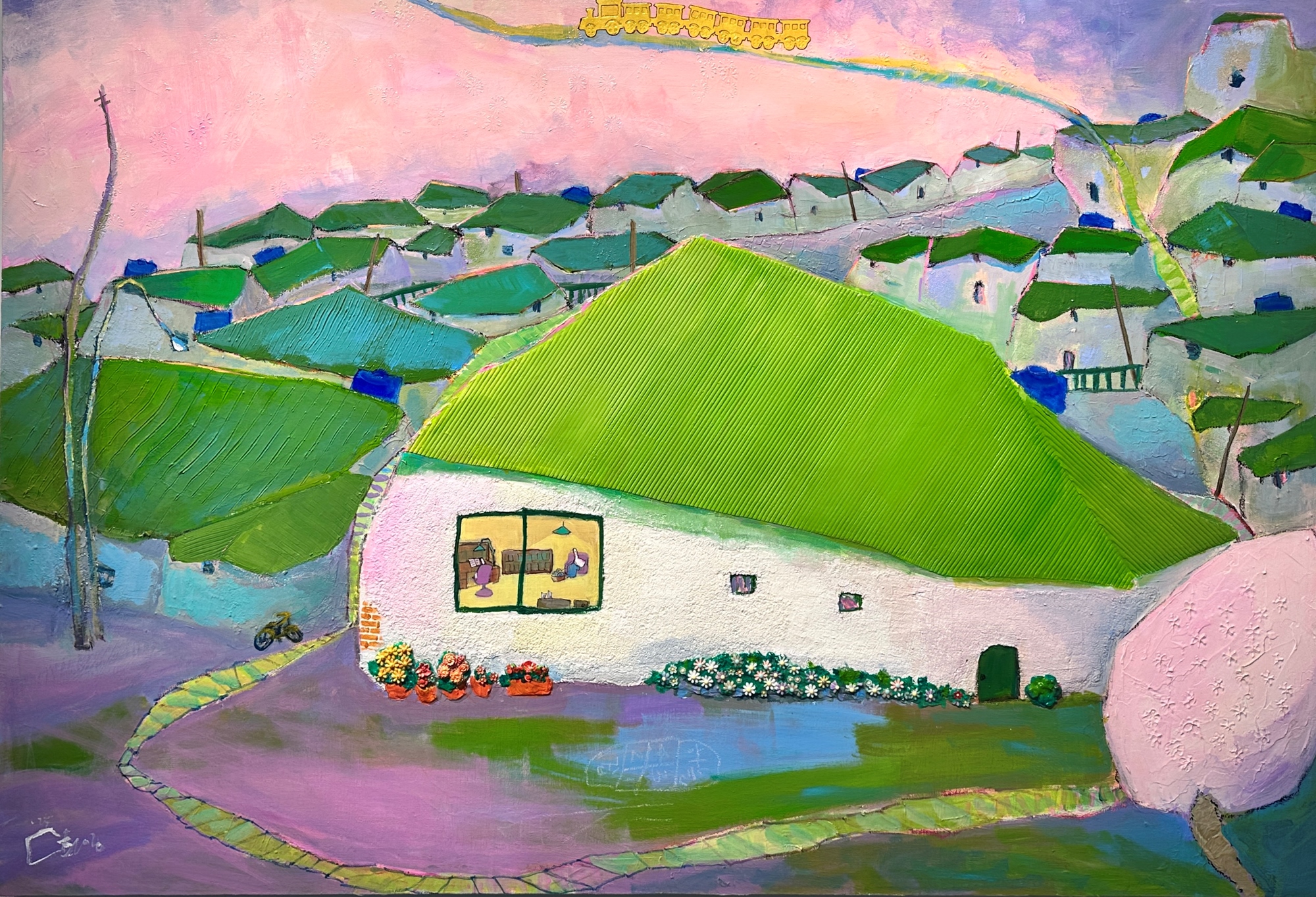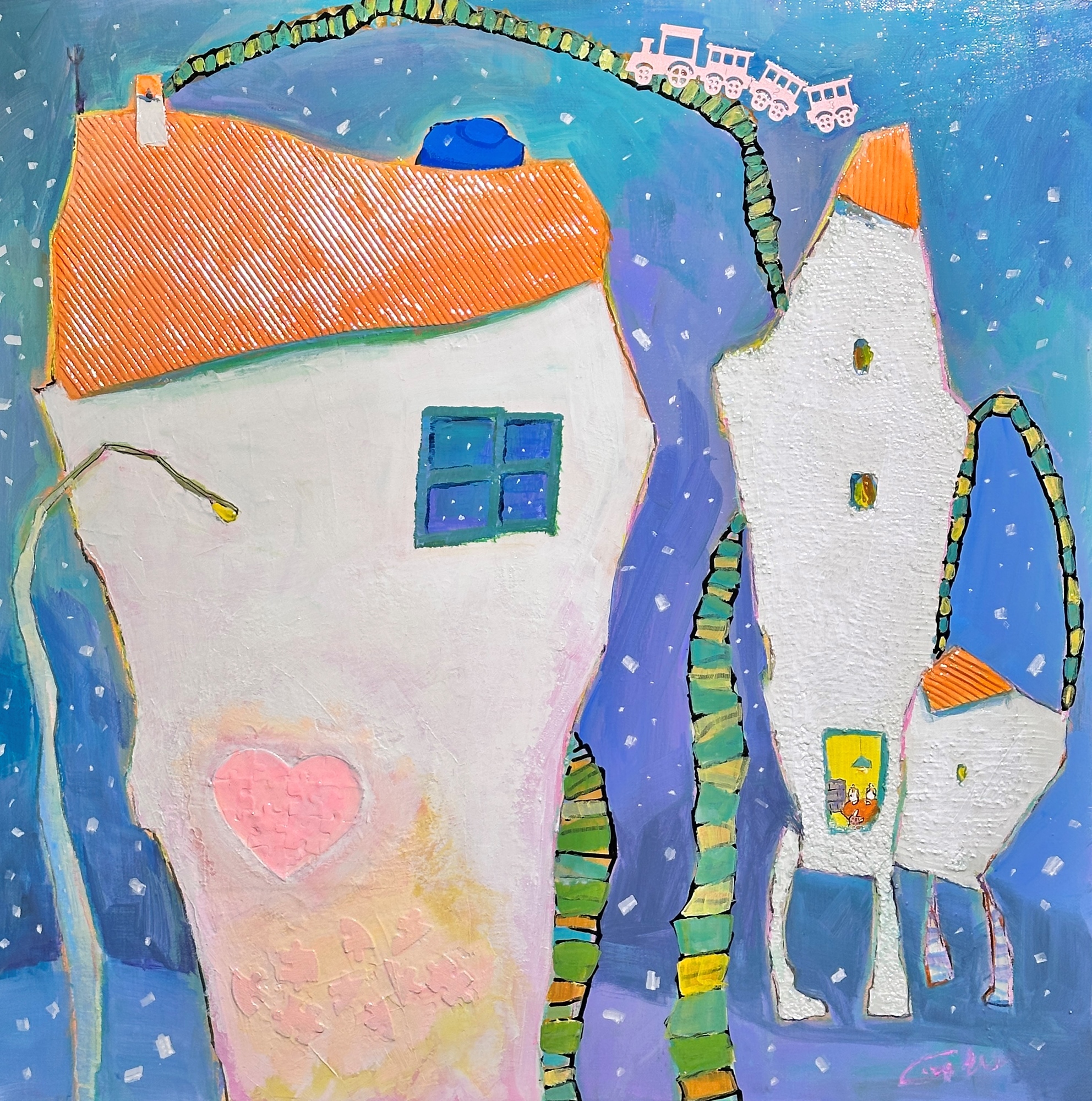 Hyunju Lim is a South Korean artist based in Busan. She has been painting her whole life and took a break to care for her family and household. In the past few years she has returned to the easel to share her whimsical and joyful worlds of wandering streets and the heart searching for small joy.