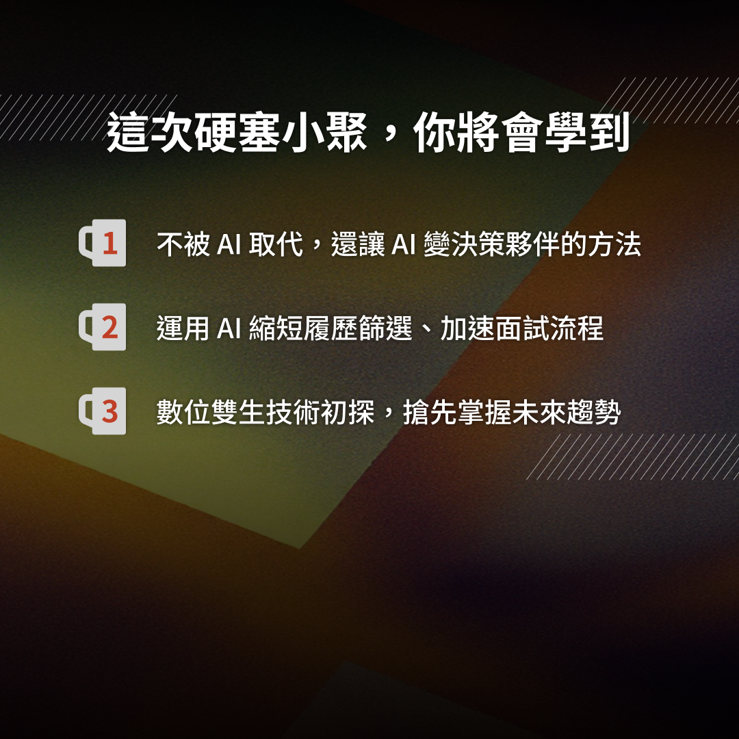 - 您瞭解並同意本活動的主辦單位為硬塞的股份有限公司、共同主辦單位為 TNL Mediagene 關鍵評論網媒體集團、場地贊助單位為成果行銷有限公司、指導單位為中華民國資訊軟體協會。基於前述單位基於包含但不限於本活動和提供 行銷、消費者/客戶管理與服務、資訊通訊服務、其他電子商務服務與顧客行為研究服務、廣告或商業行為管理等相關業務之目的,將對於您個人資料為蒐集、處理及利用,您已詳閱、瞭解並同意下開告知事項內容: