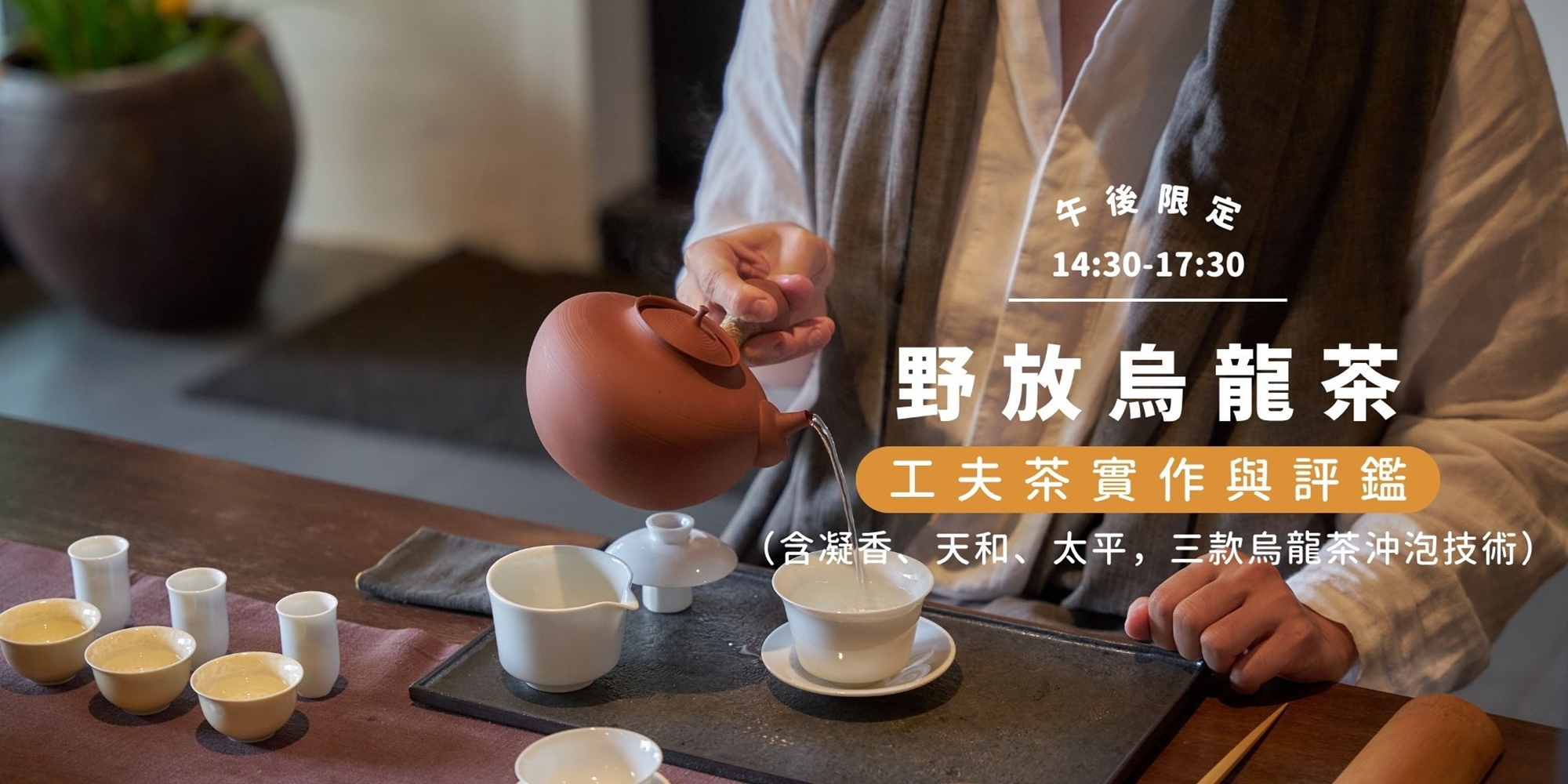 從野放茶園到蓋碗技藝的完美之旅您是否嚮往那些⽣長於⾃然、無過度⼲預的野放烏龍,其純淨且富有層次的獨特韻味︖您是否苦於無法精準掌握蓋碗沖泡的訣竅,讓好茶的精髓無法完美展現?