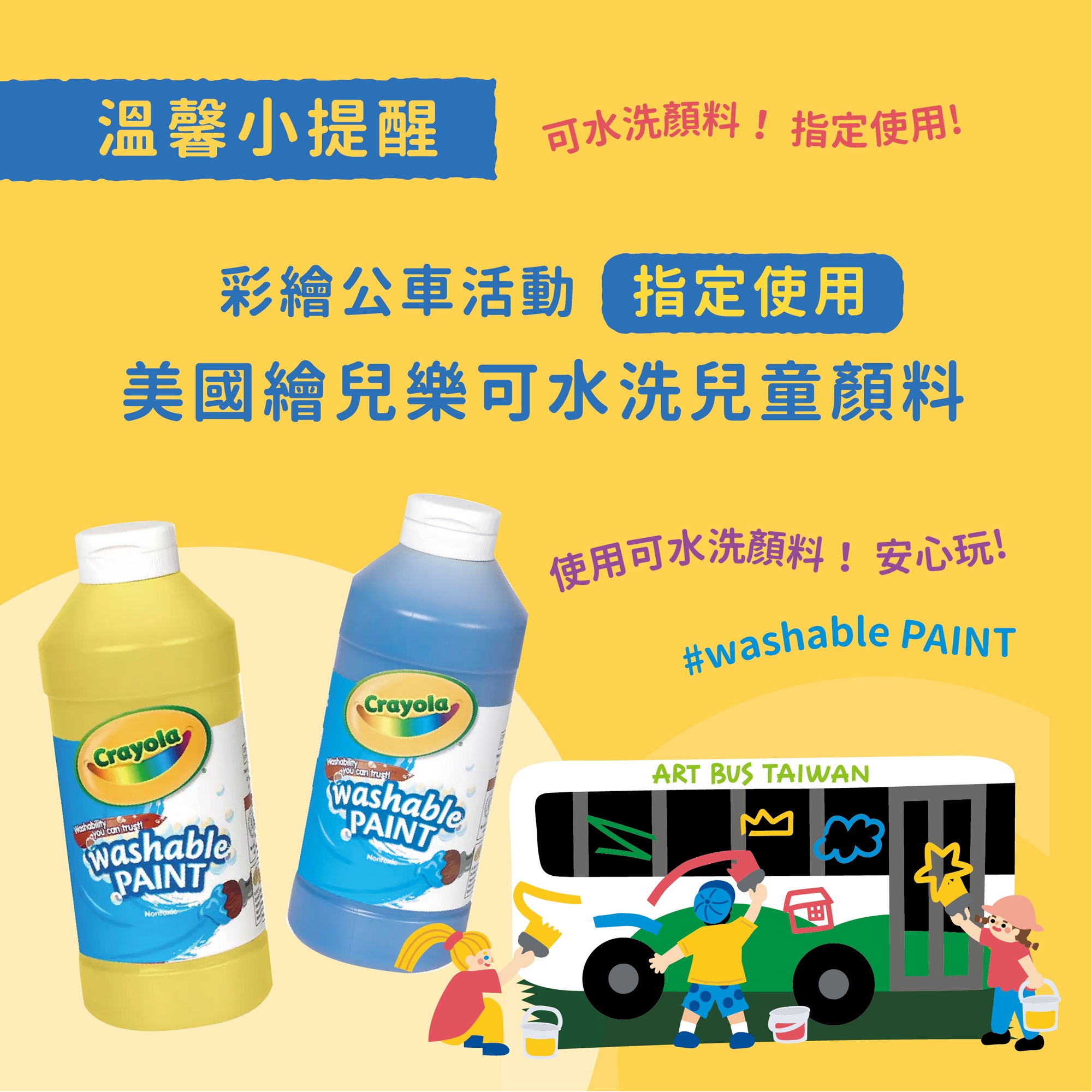 一起愛護公車,本活動僅限使用美國繪兒樂可水洗兒童顏料。如現場發現使用其他顏料,主辦單位有權利禁止。