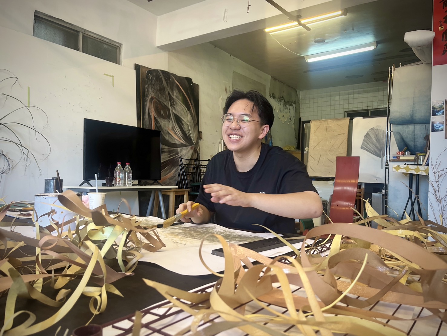 以平面素描與立體雕塑為創作主軸,作品深入自然材料與植物肌理,透過細膩觀察與反覆書寫,具詩意紋理與在地感。