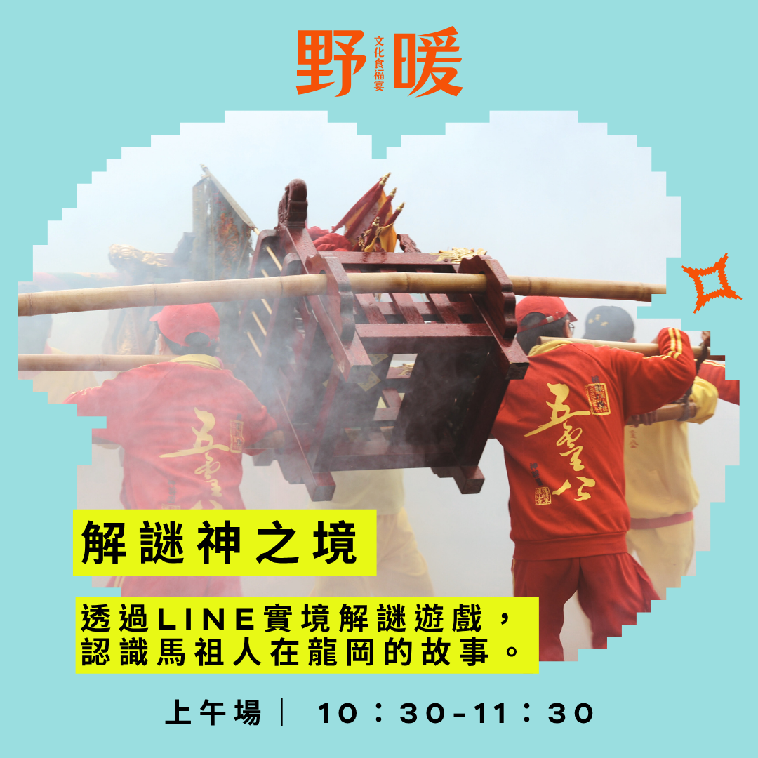 「野暖」(ia noung)一詞來自馬祖語。「野」是很、非常的意思, 「暖」則是溫暖、熟悉的感覺。這樣的暖意,來自信仰的庇佑、土地的記憶與社群的凝聚。在馬祖戰地政務時期,許多馬祖的神與人一起橫跨黑水溝,在異地安身立命。今年我們以桃園龍岡地區的馬祖廟宇,作為探索信仰與地方文化的途徑,透過廟宇的探訪,串聯龍岡的馬祖移民、紀錄龍岡的馬祖文化地景。