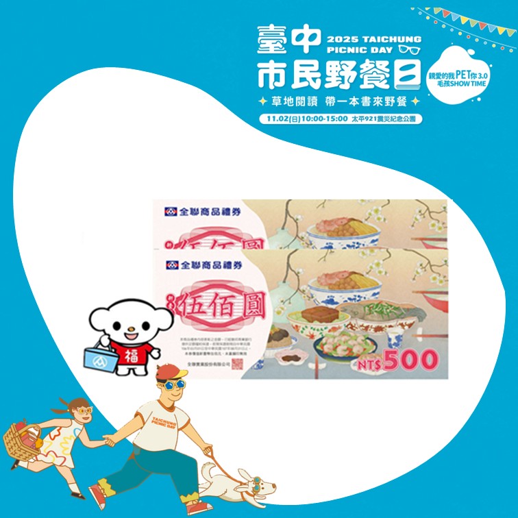 現場活動開放民眾票選出與野餐日最契合的主題,依據創意度、可愛度、搞笑度及主題符合度,邀請現場民眾進行評分,歡迎大家盡情展現專屬於毛孩的獨特魅力,還有豐富的大獎等你拿!
