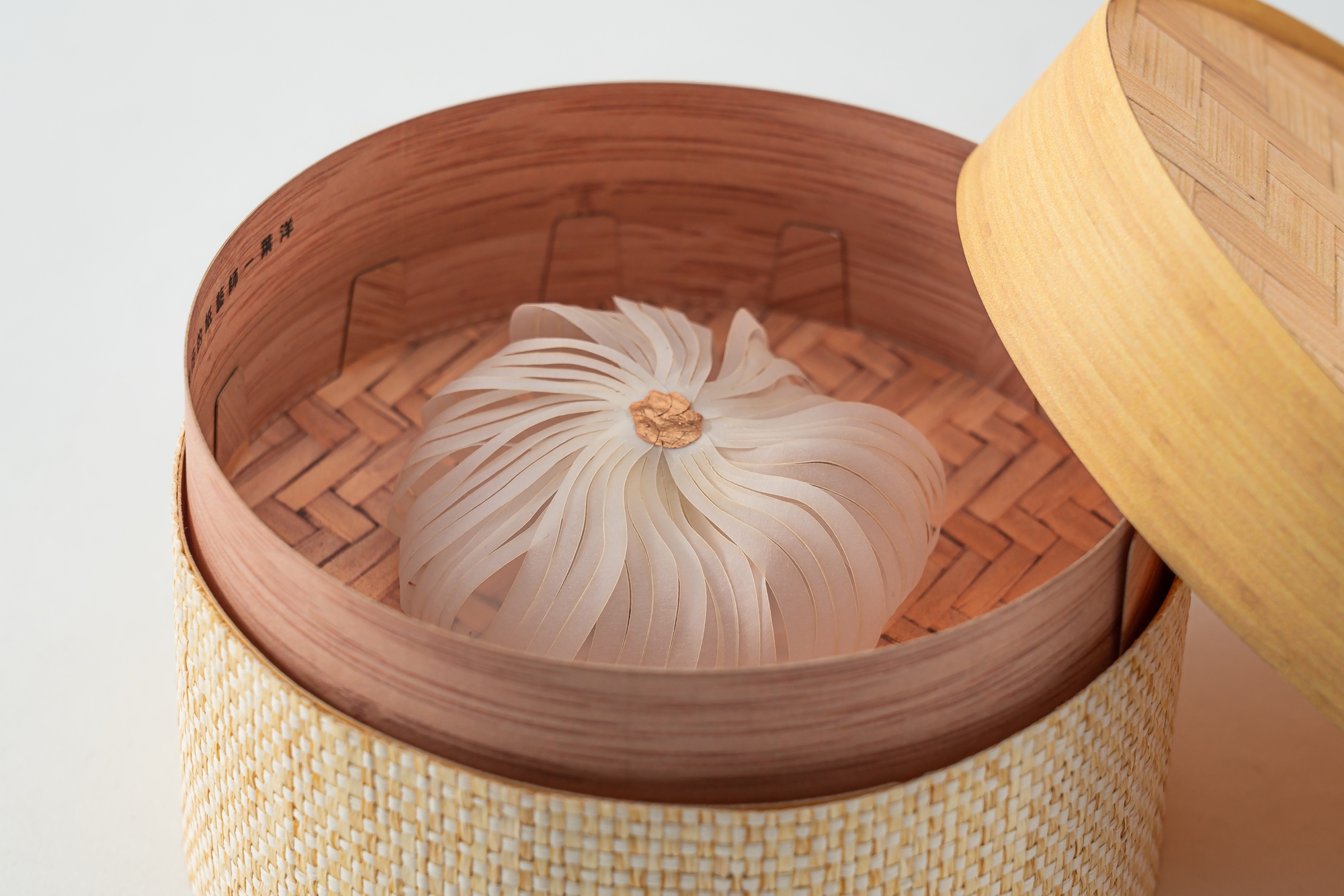⬆︎打開蒸籠可見到晶瑩剔透的小籠包,當然它們都是紙做的。