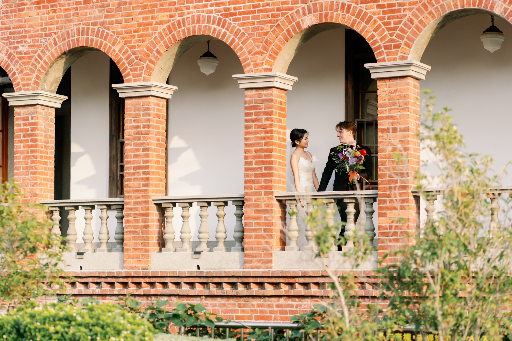 2.其中包含以閩式紅磚建造的女兒牆及迴廊拱圈
