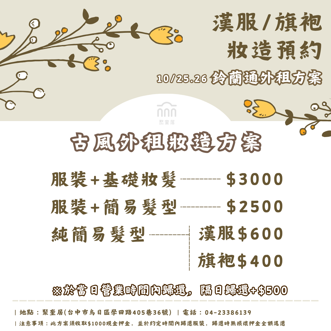 #外出古裝 與 #妝造服務將在這兩日於聚奎居與大家相見