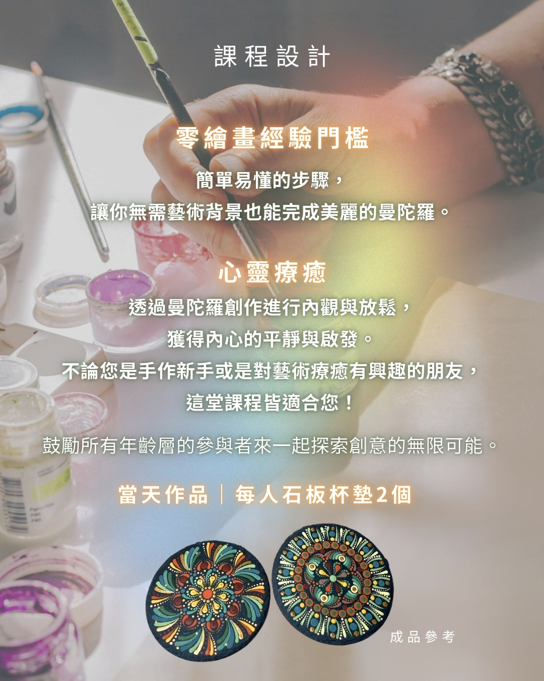透過曼陀羅創作進行內觀與放鬆,獲得內心的平靜與啟發。
