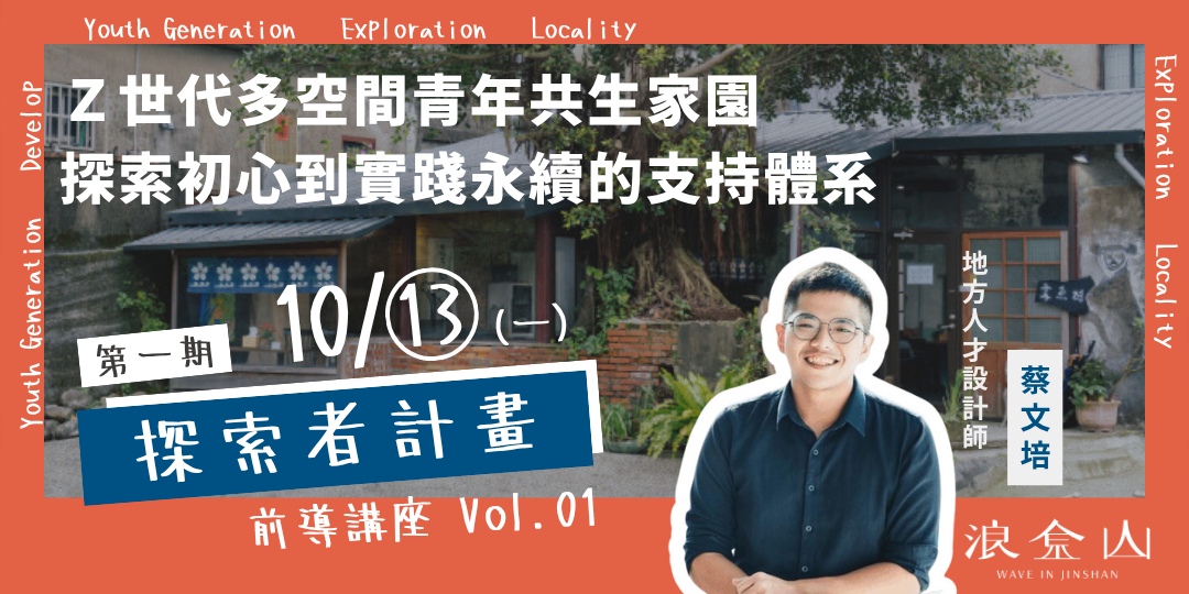 本場講座邀請 浪金山創辦人 蔡文培,分享他如何從外地青年到地方共構者,如何把「想做什麼」變成「真的在做」,以及探索者計畫背後,支撐青年從迷惘到實踐的關鍵系統。