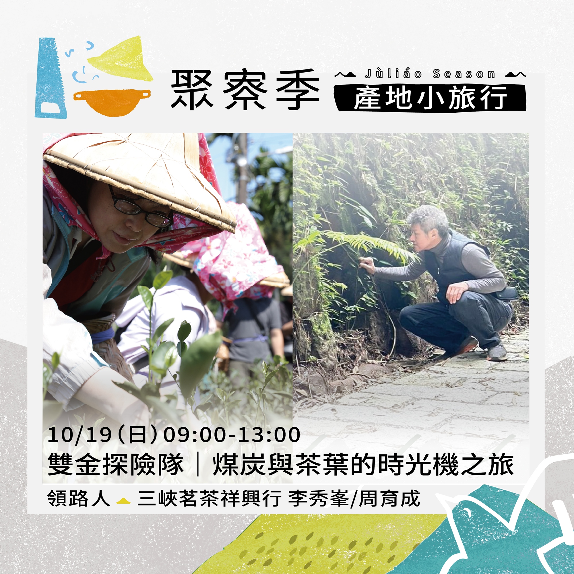 10:15-11:00 | 茶金時光: 採茶體驗 | 抵達茶園,認識三峽的青心柑仔。挽起袖子、彎下身子,親手採摘一心二葉,曬著陽光、聞著青草氣息,感受當茶農的日常。 |