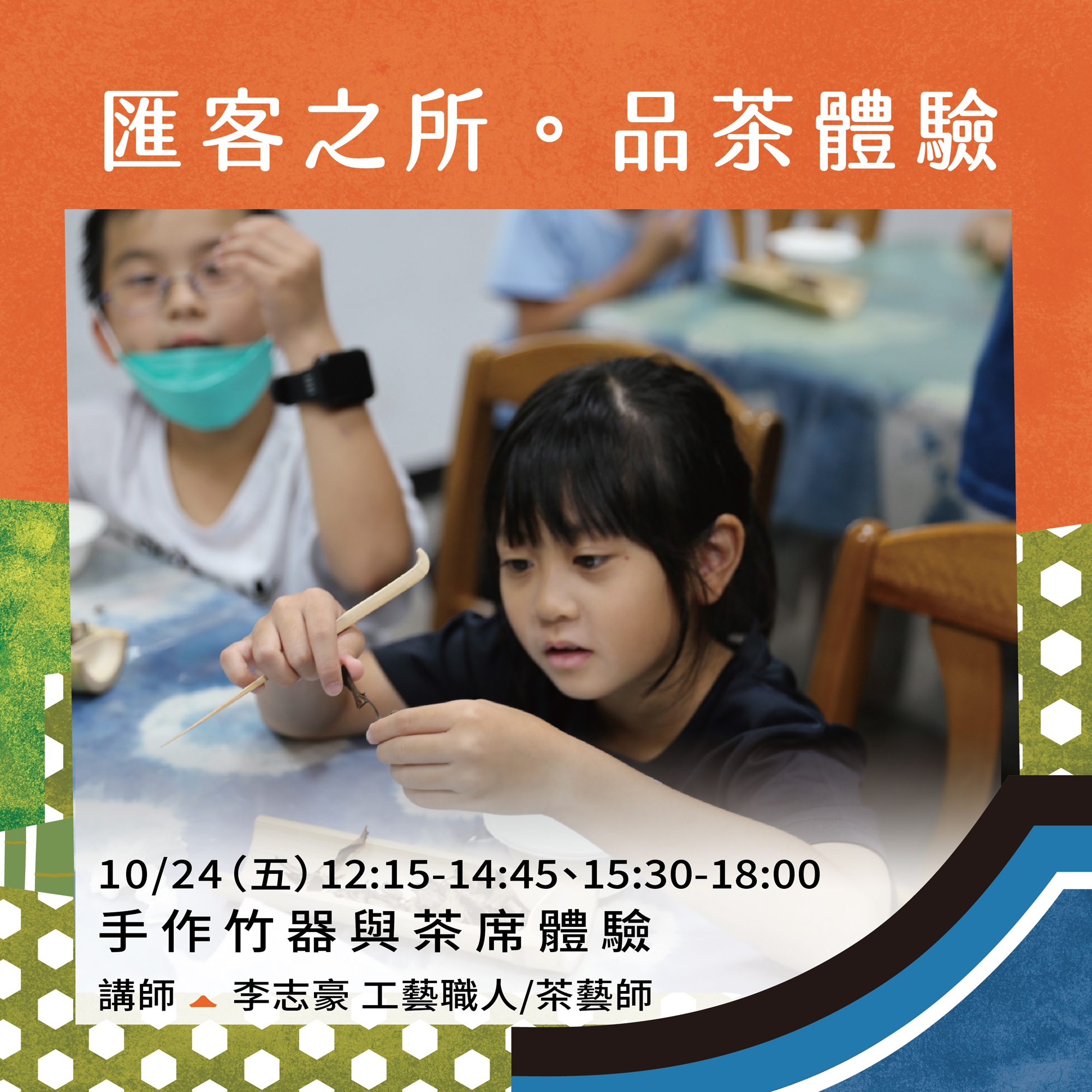 邀請大家走進新北客家文化園區,在竹與茶交織的氛圍裡,親手打磨專屬的竹茶器,並隨著茶香展開一場茶席之旅。透過職人帶路,體驗竹材工藝的溫潤質感,品味百年三峽紅茶的文化故事,度過充滿茶香與手作樂趣的午後時光.ᐟ.ᐟ