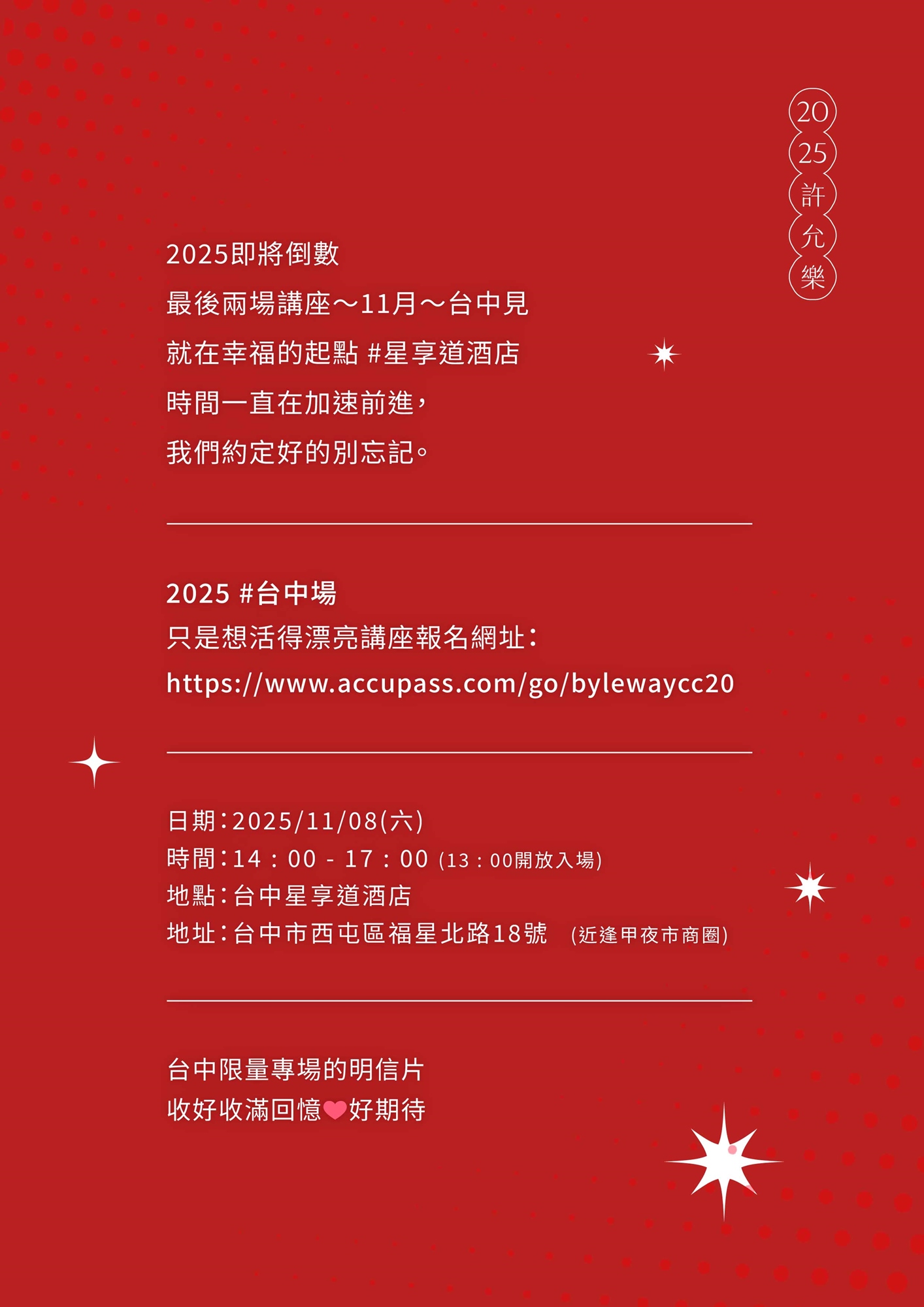 許允樂|只是想活得漂亮講座|2025/11/08 台中場