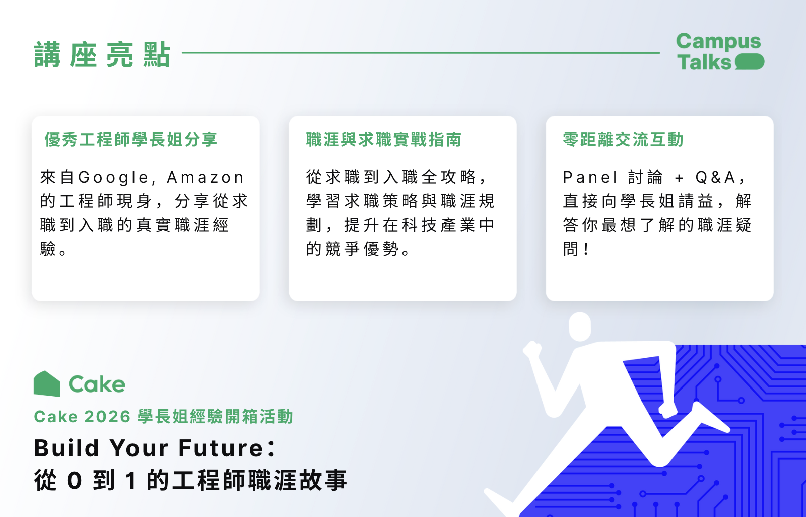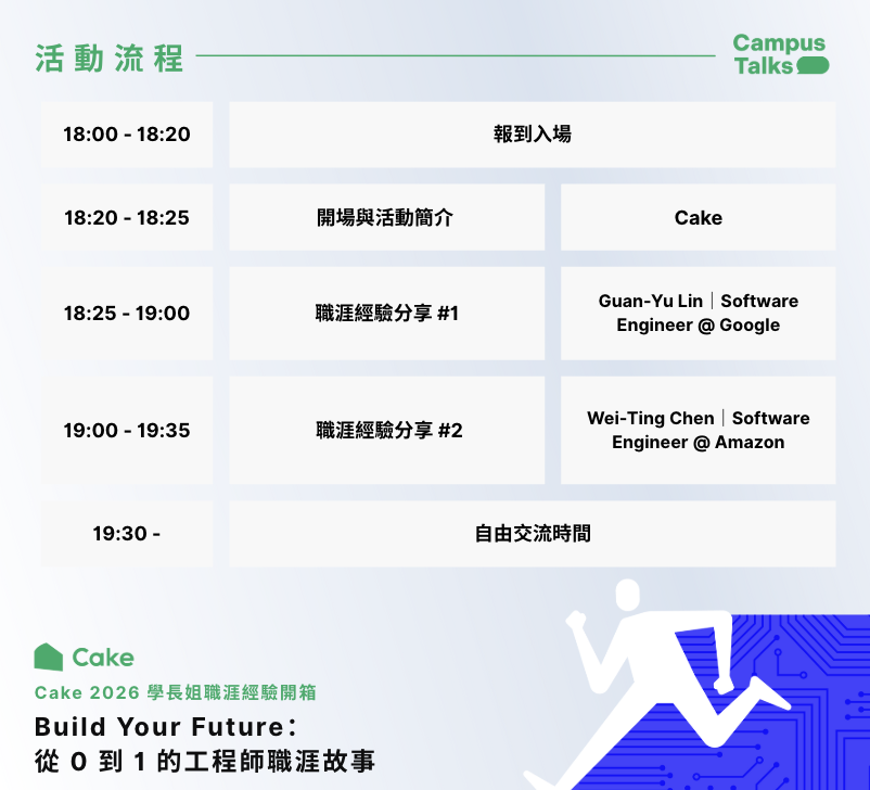 不要錯過 Cake 為年輕人才量身打造的 2026 學長姐職涯經驗開箱 Campus Talk!