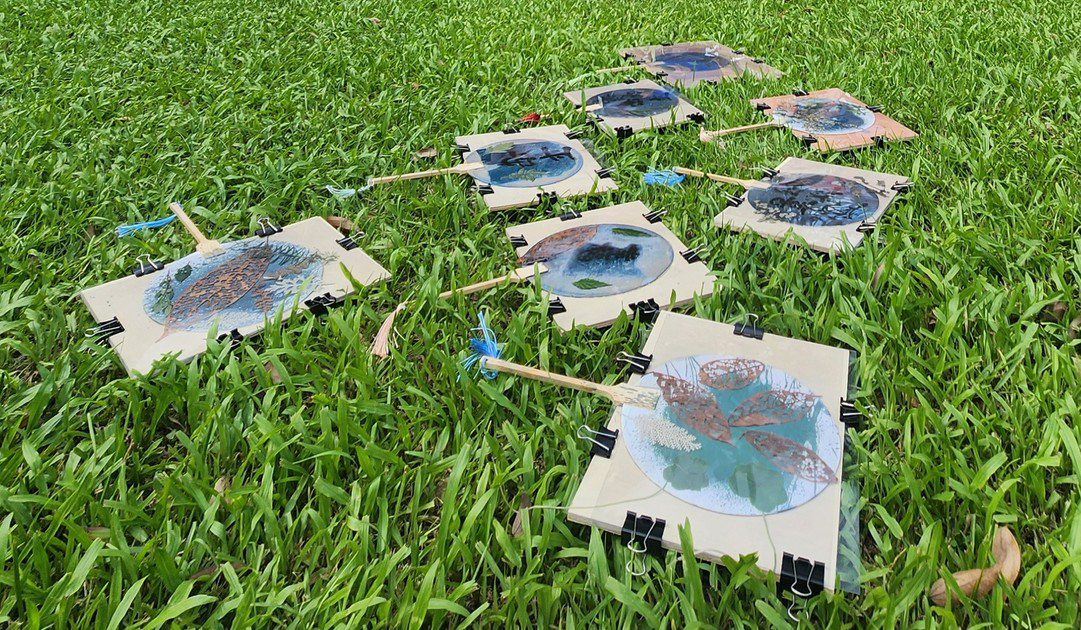 從莊園的花草、葉片中挑選元素,搭配顏料、紙張,以拓印方式記錄自然紋理