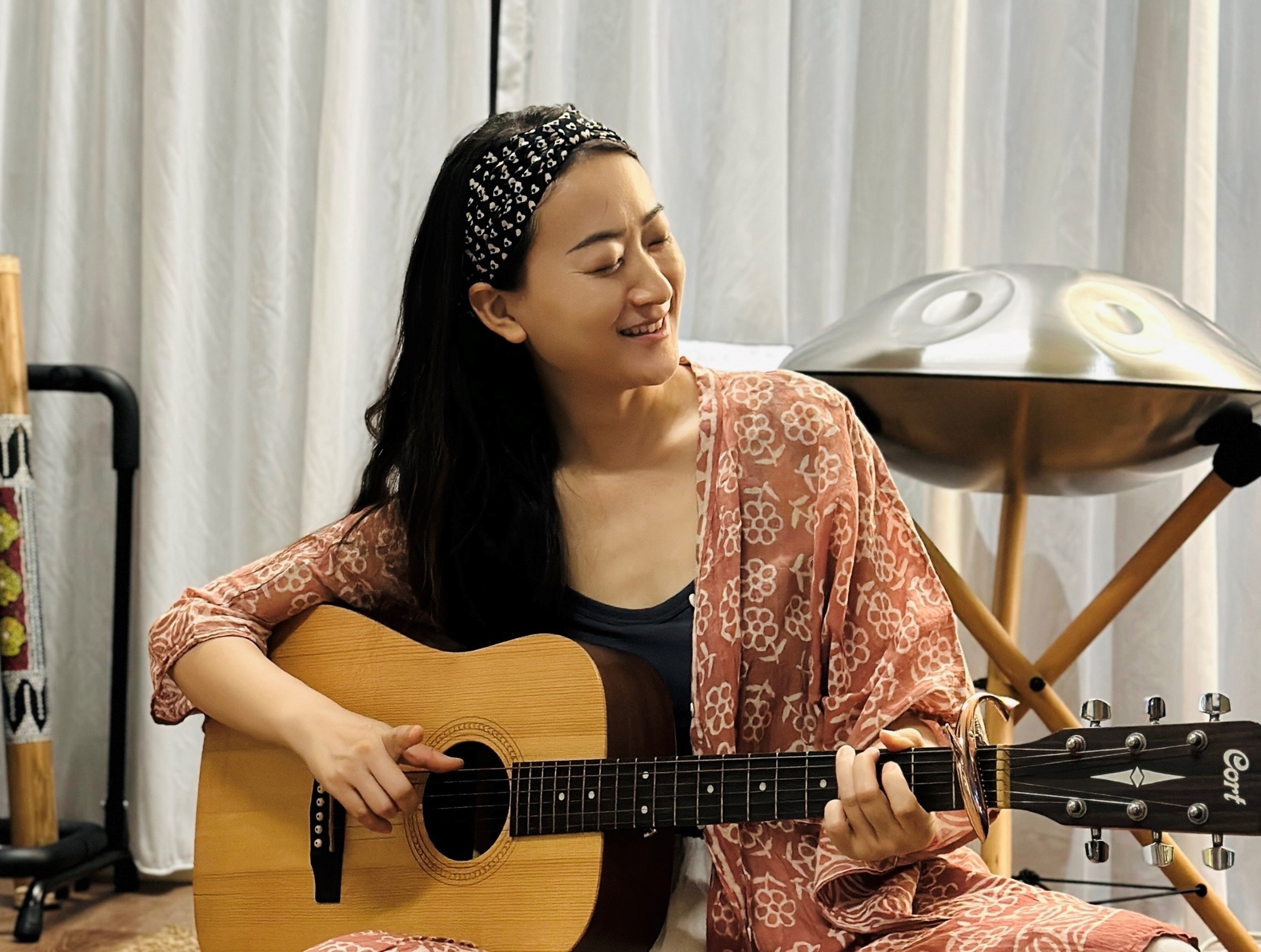在靜心領域實踐了多年,也嘗試過很多種靜心的方式,最後發現能全然讓自己處在當下的就是唱頌。無論去到哪裡,我總喜歡背著吉他,走到哪唱到哪。我相信,音樂能治癒一切,就算你不懂歌詞,也能被這古老的文字和治癒心靈的旋律所打動。哪怕只是靜靜地閉著眼睛聆聽,也能感受到唱頌帶來的平靜和喜悅。那種由內心深處所散發出來的感動會在你眼中閃爍著不一樣的光芒。